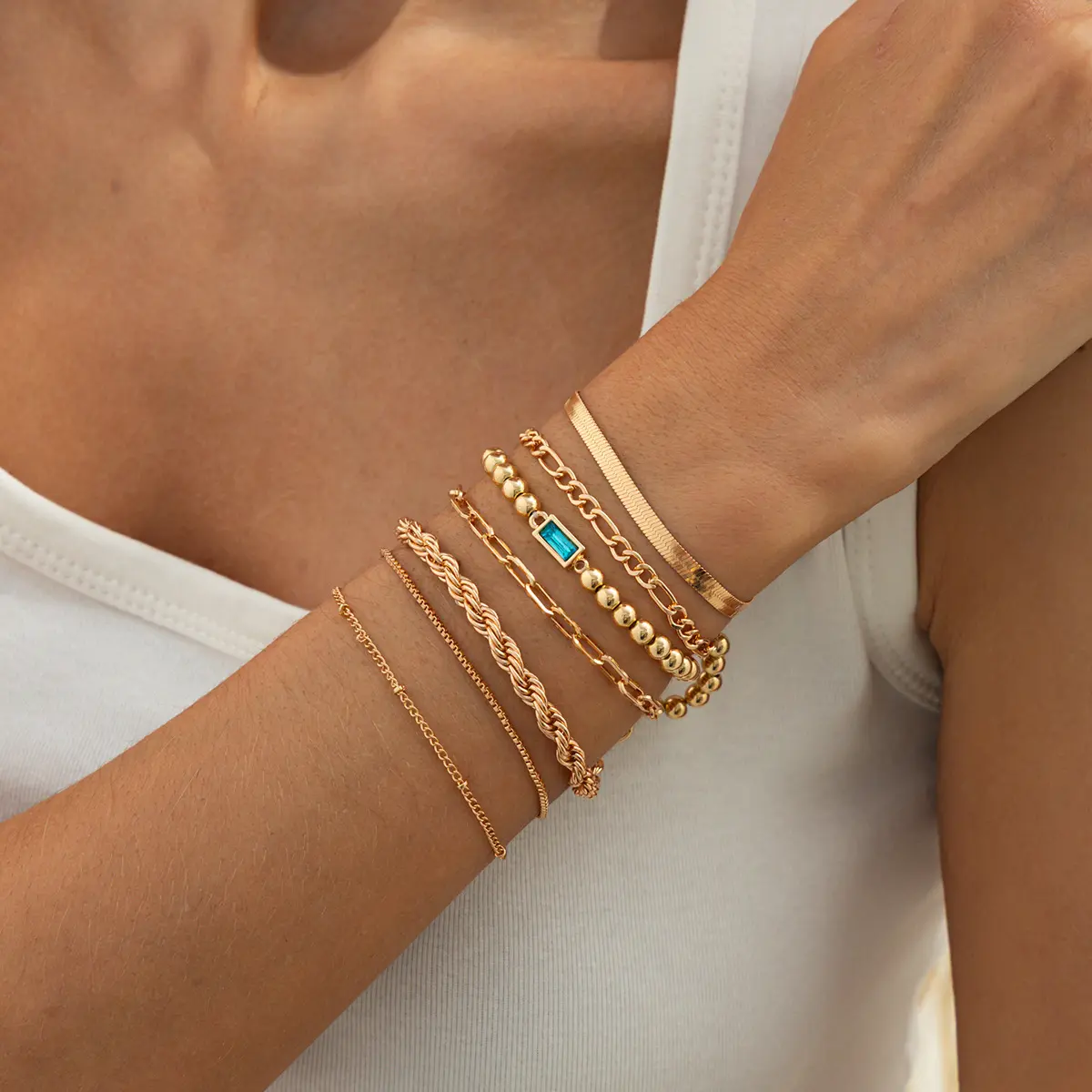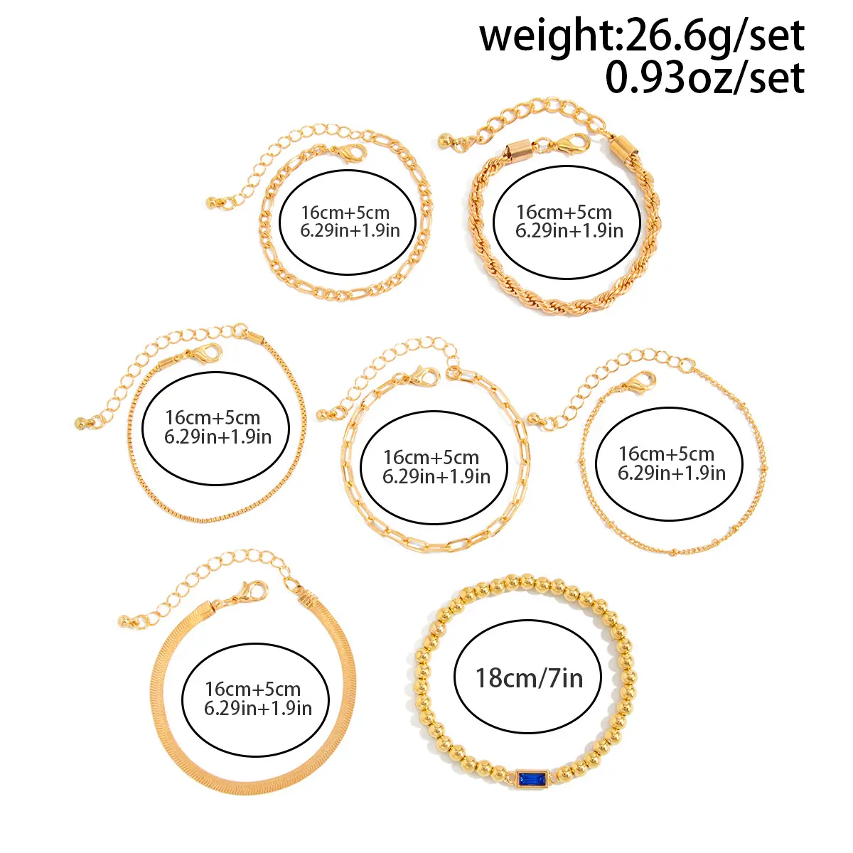 ·Includes 7 bracelets: beaded, chain, rope, etc.