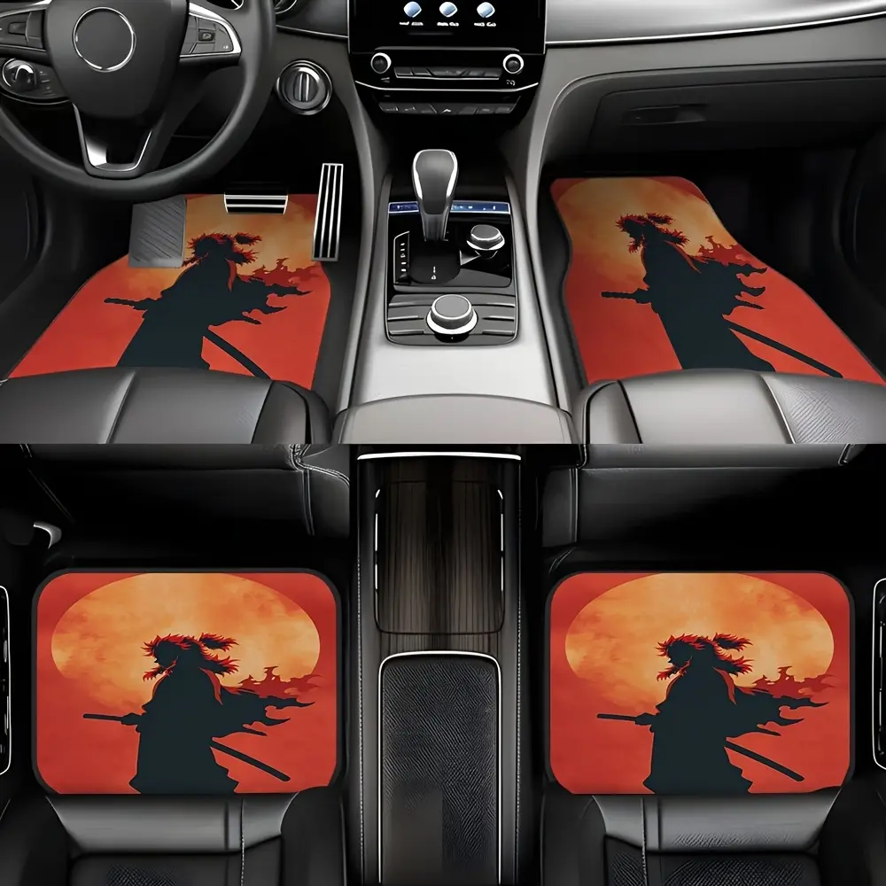 4pcs Anime-Themed Car Mats Compatible for Fit - Cute Anime Characters, Synthetic Rubber Non-Slip Pet-Friendly -Weather Auto Liners (Front/Rear Seats)