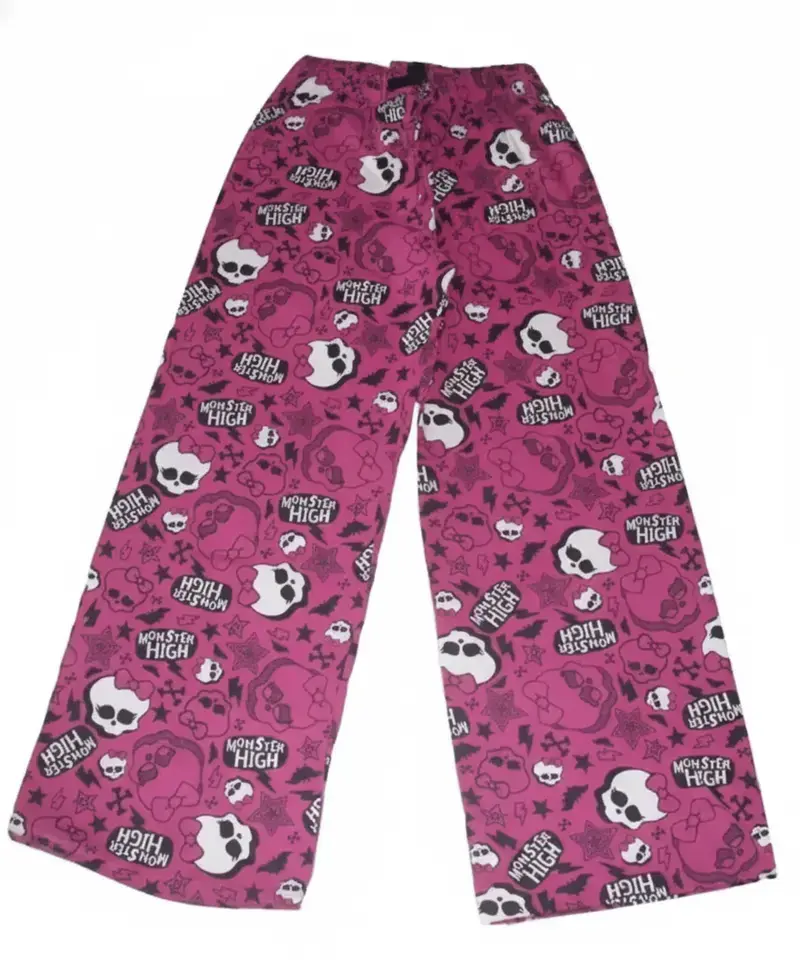 Pink Cute Monster Pajama Pants – Gothic Skull Print Lounge Sleepwear for Women