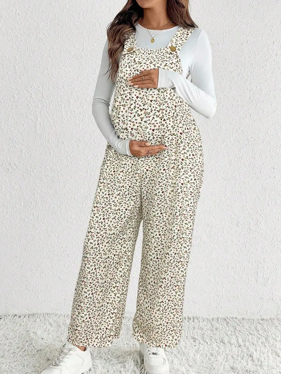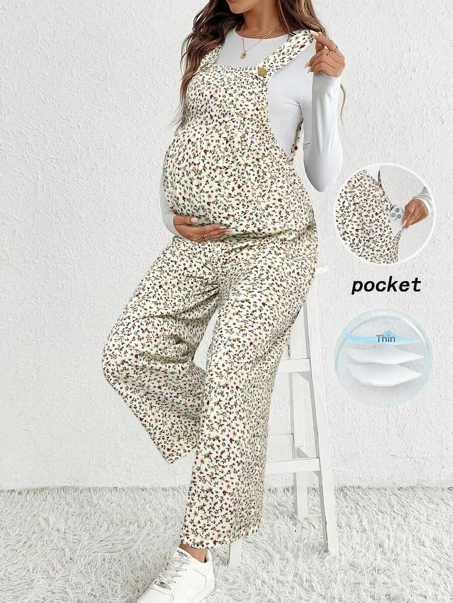 ELLIOTT Fall Clothes,Autumn Clothes,Maternity Autumn Clothes Maternity Pregnant Women Ditsy Floral Button Design Casual Jumpsuit With Suspenders Maternity Overalls Maternity Jumpsuits