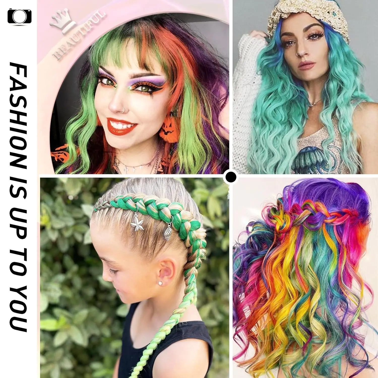 Get pops of electric color without bleach or commitment! Silky synthetic strands blend smoothly, zero shedding, zero fuss.