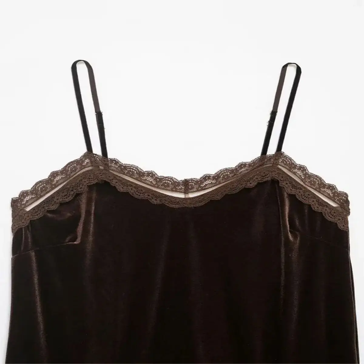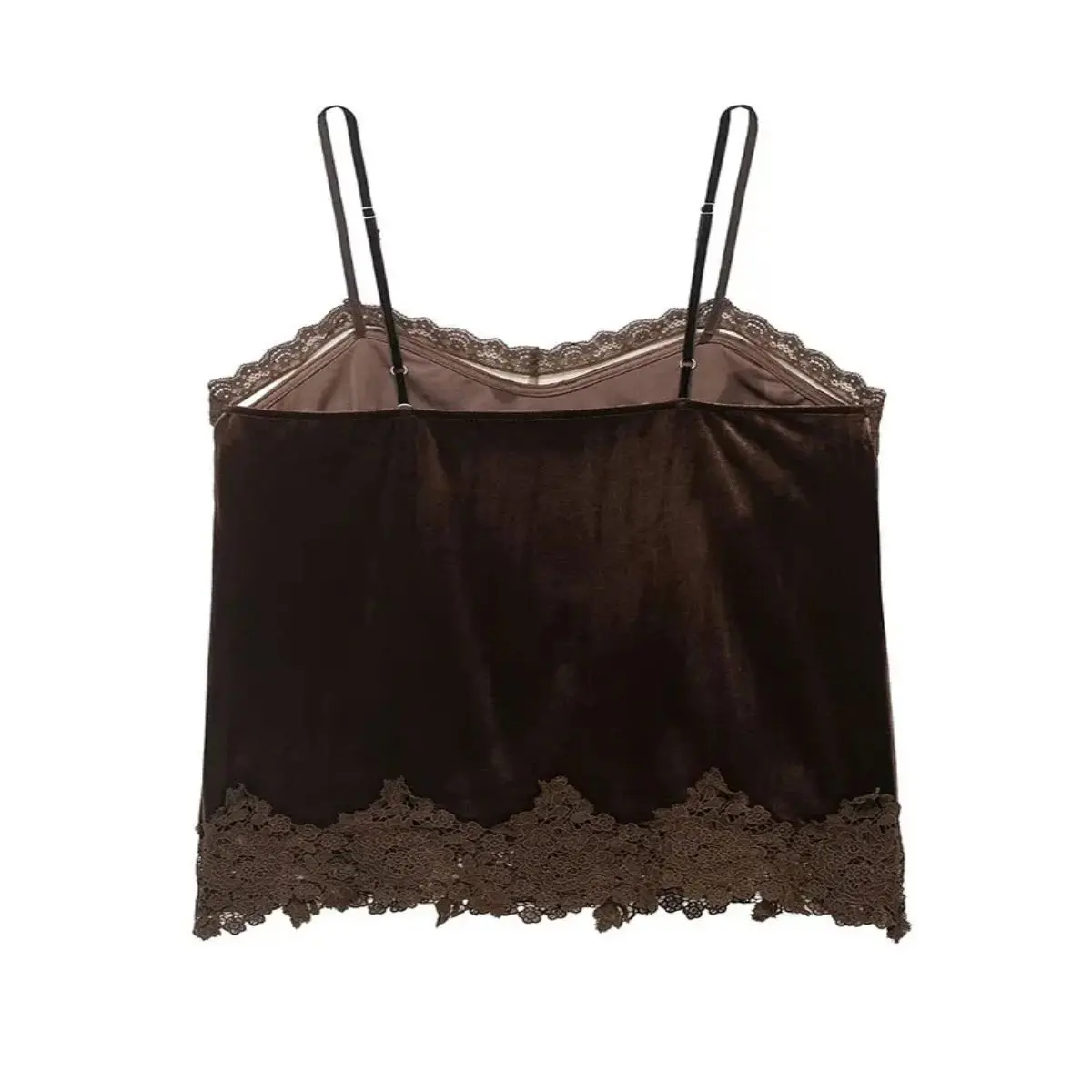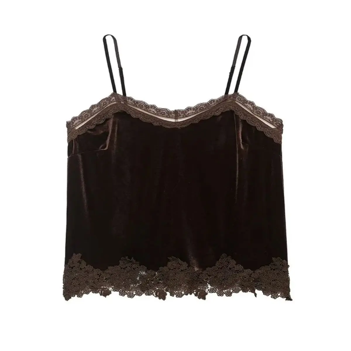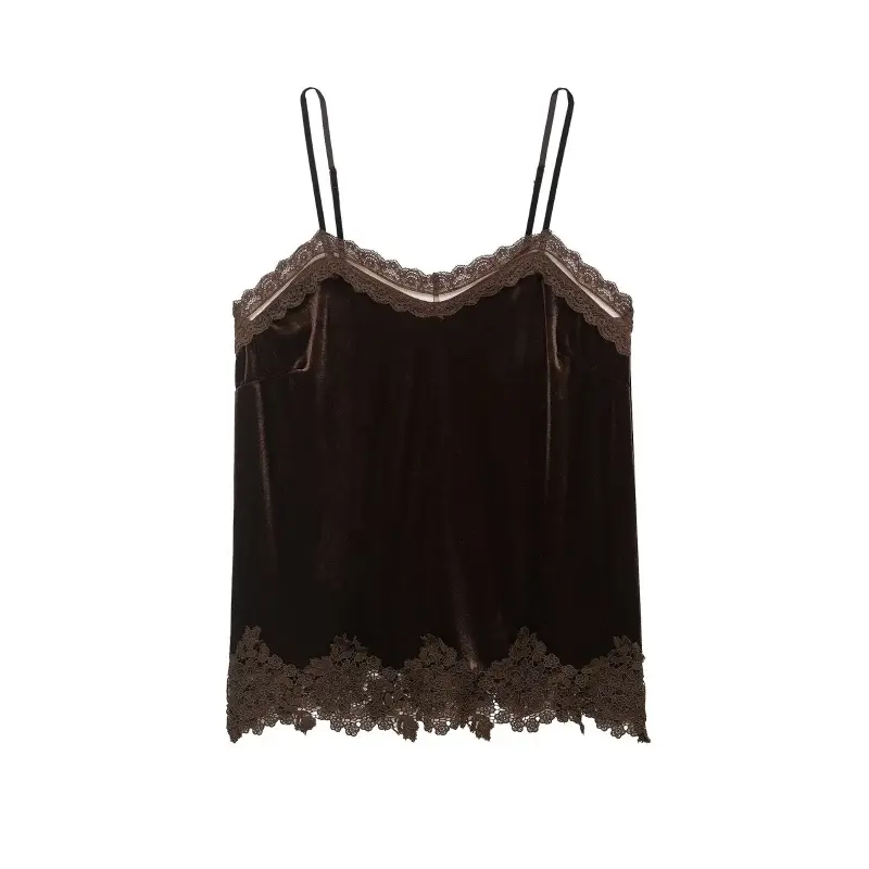2026 summers hottest high street chic top! Crafted with luxurious velvet and delicate lace patchwork, it features a sleeveless sling design, flattering V-neckline, and feminine silhouette. Perfectly shows off your collarbone and neckline, comfortable to wear, easy to pair with jeans, midi skirts or leather pants. Ideal for dates, brunch, club nights and casual outingseffortlessly sexy and on-trend.