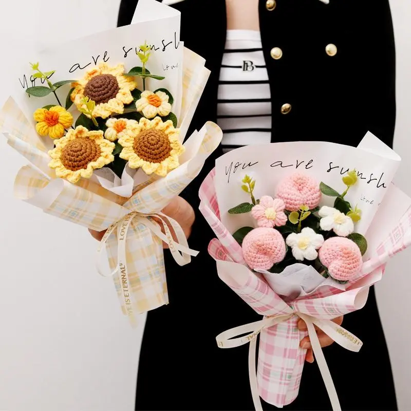 Crochet Flowers Graduation Flower Bouquet Eternal Flower Wedding Guests Gift Woven Sunflower Mother's Day Gifts