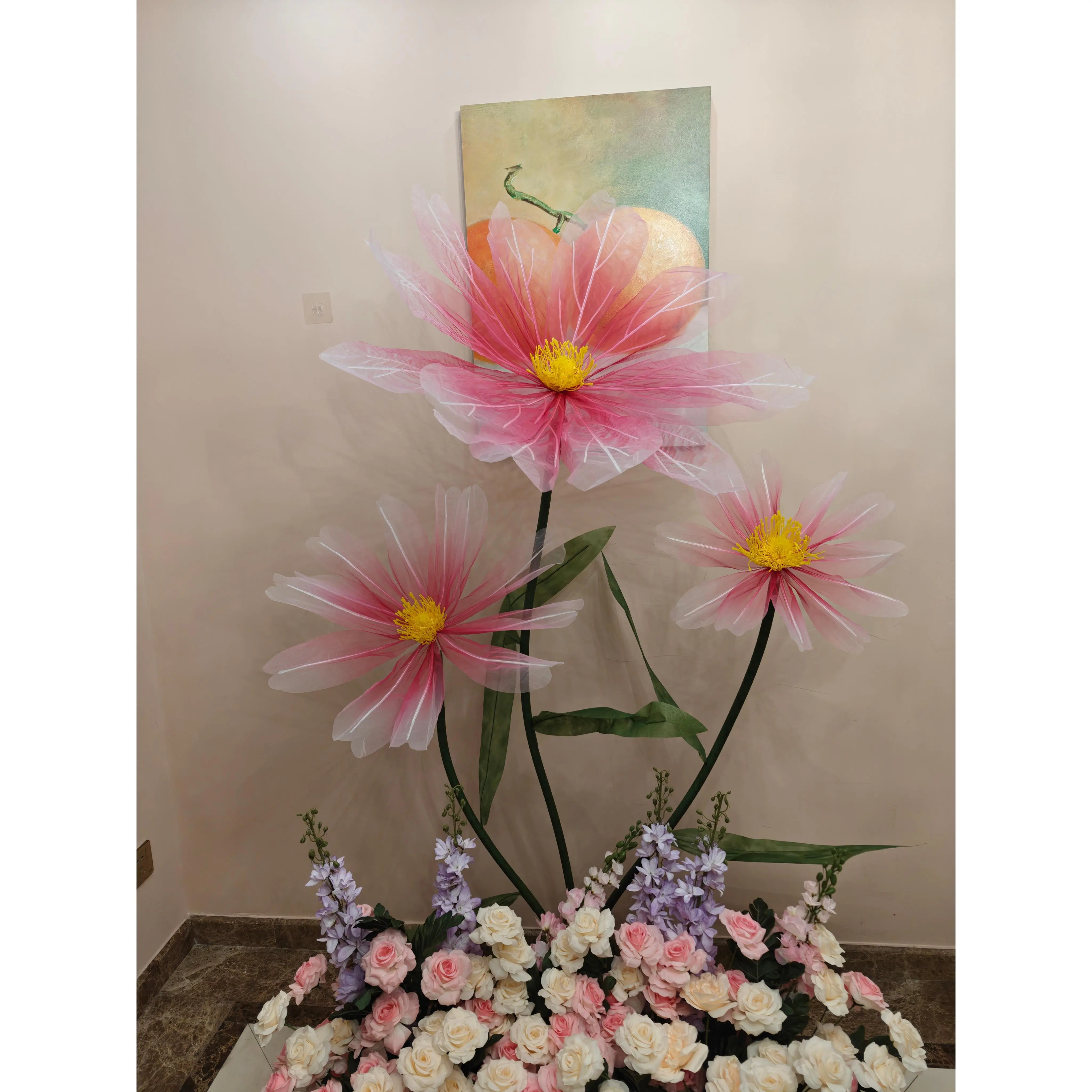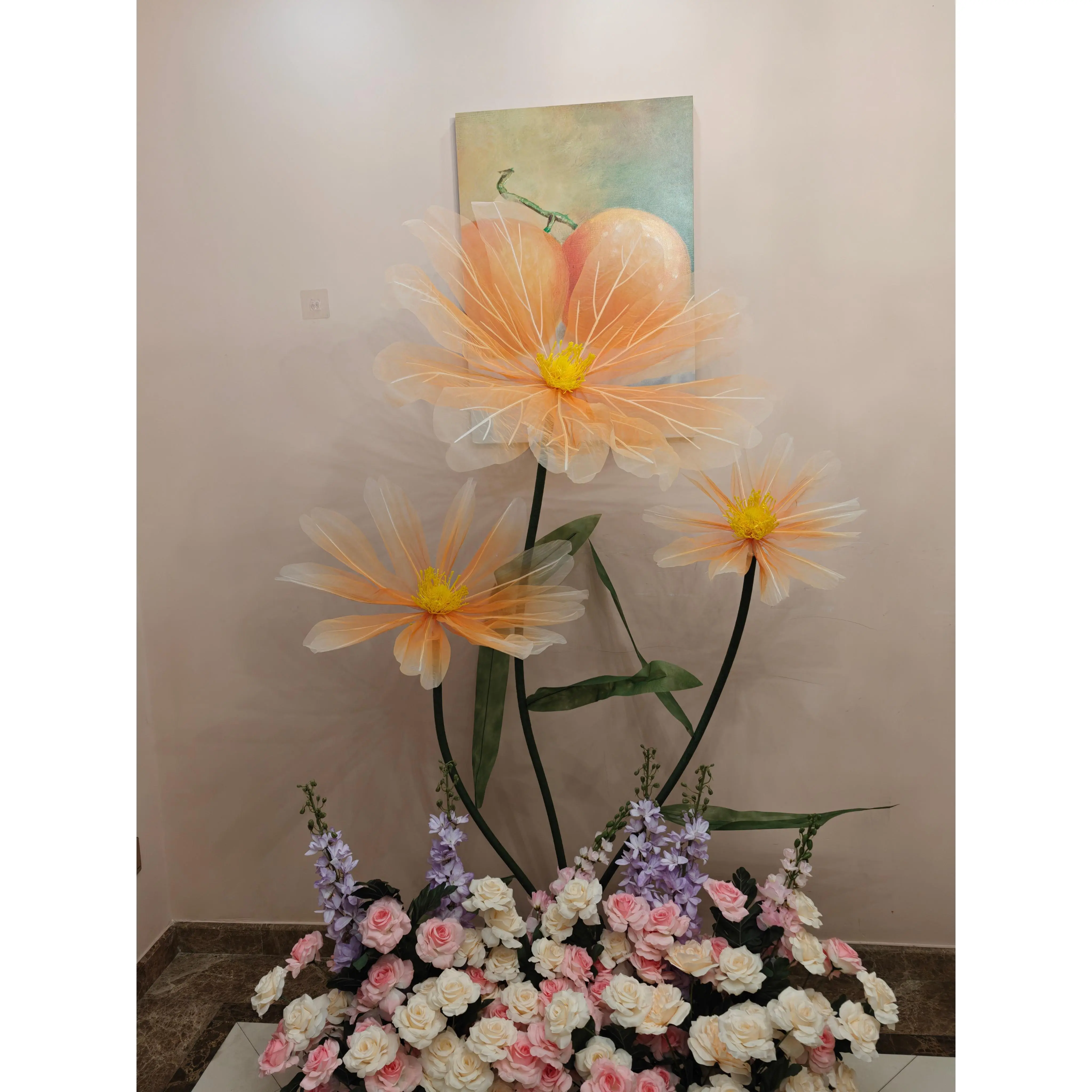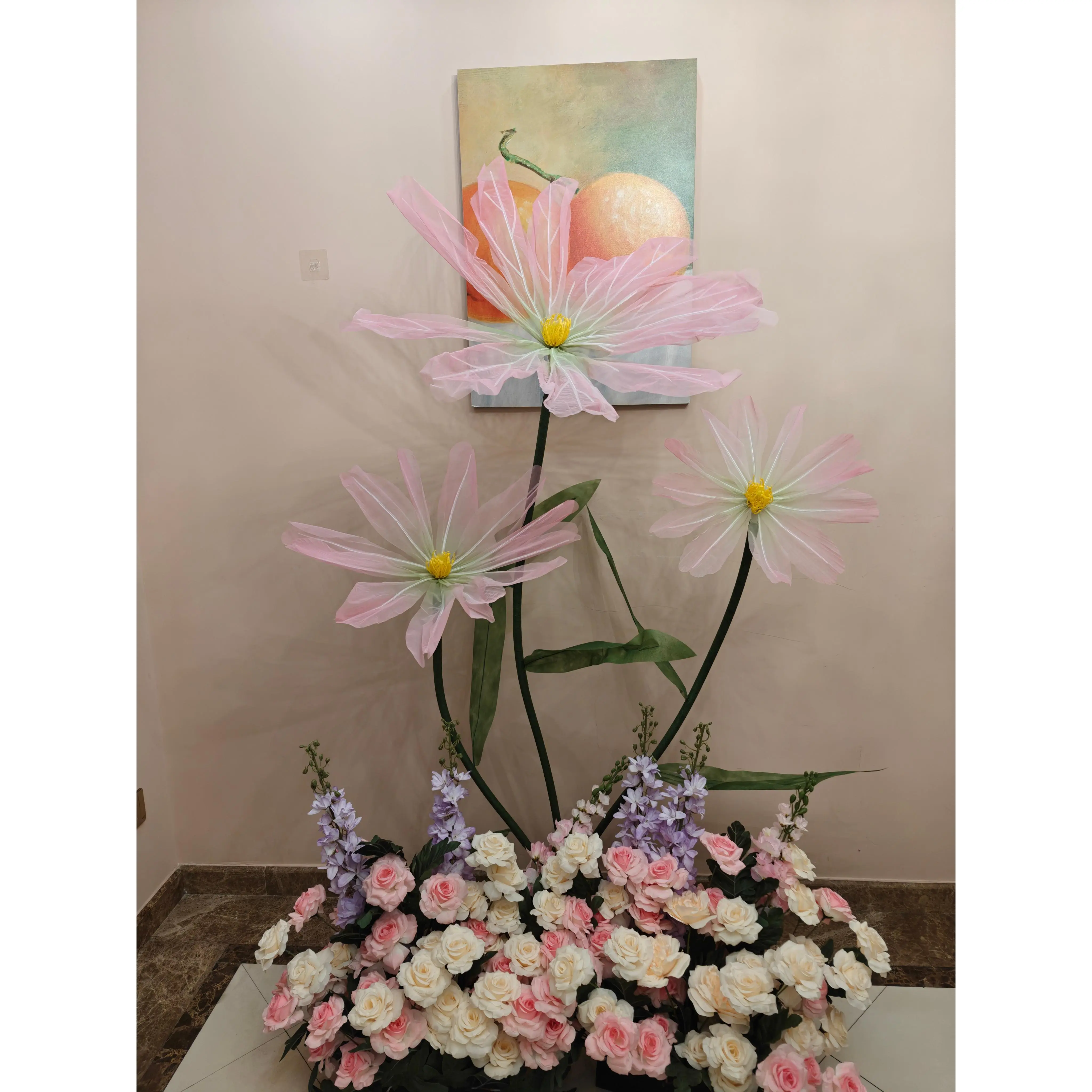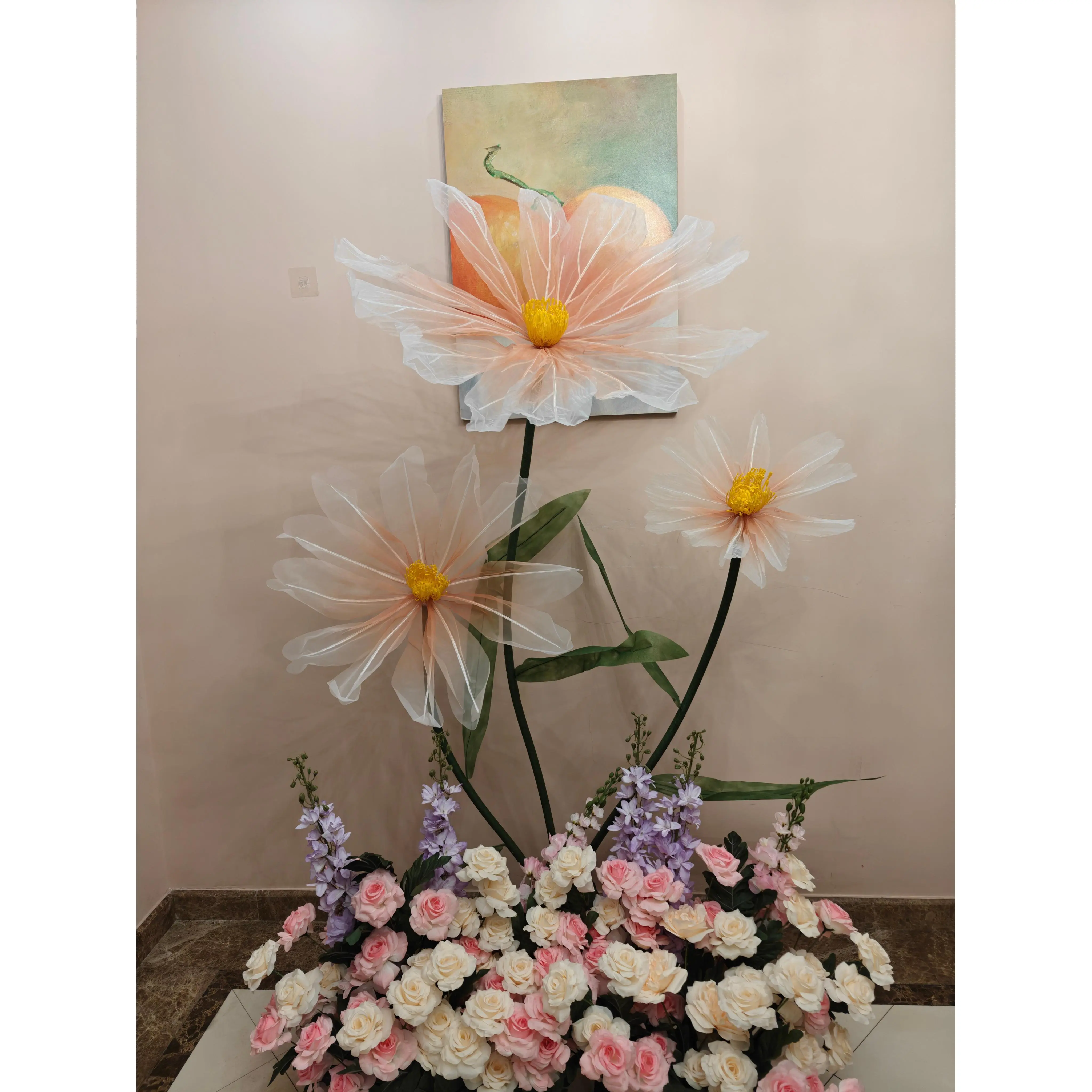Product Name: Artificial silk flower Material: High Quality Mesh Flower/Iron Base Flower Head:40/60/80cm