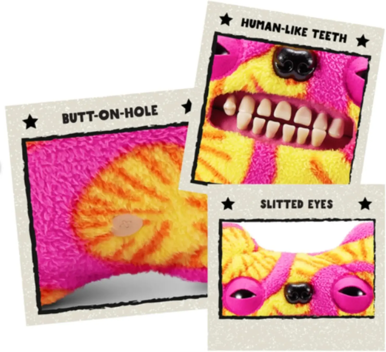 ·Human-like Teeth: Each Fuggler features a set of disturbingly human-like teeth.