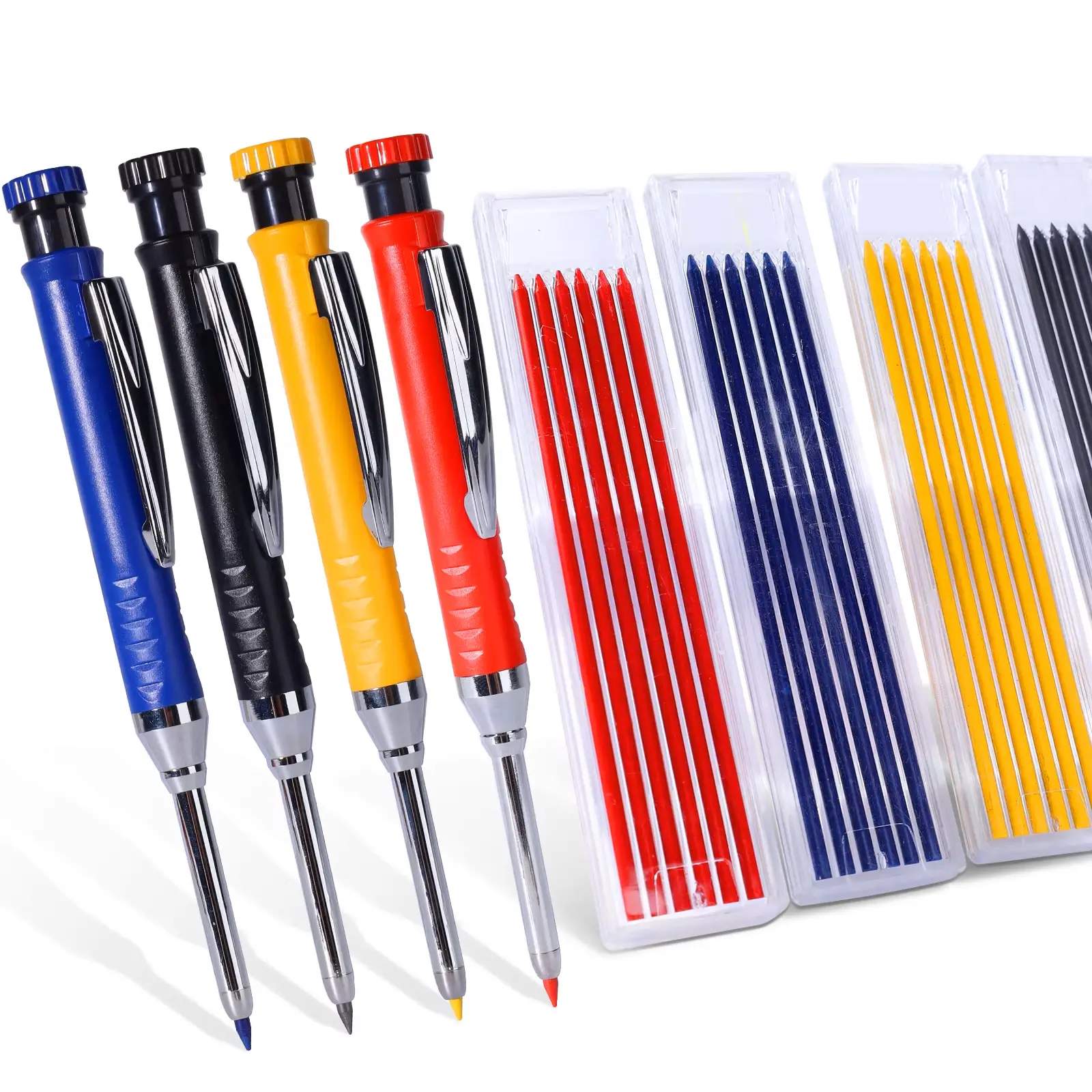 ·High Quality Lead Refill in Black and Colors: The carpenters pencil comes in 2 LINE SIZE(2.0mm, 2.8mm) with 40PCS black & colored refills(12 colors for 2mm, 6 colors for 2.8mm ), which is much thicker and stronger during the drawing process of construction work, it will not break or damage easily. Different size and colored pencil leads are suitable for marking on different surfaces