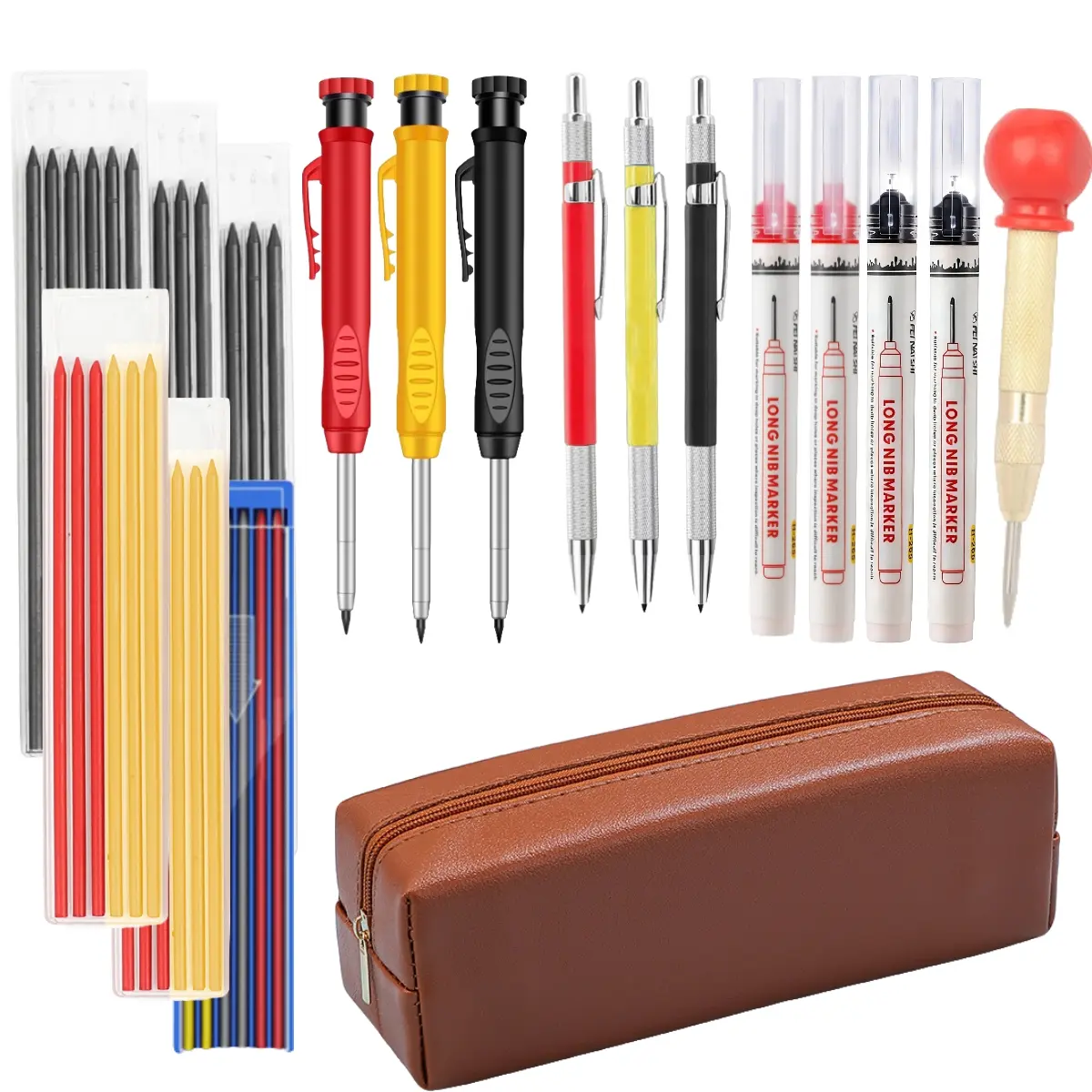 ·Various Carpenter Tools For Wide Use: With a Metal Carbide Scribe Tool, which is easy to carve on hard material such as metal, tile, glass, ceramics, wood and more. A Spring Loaded Center Punch can be operated with one hand and accurately mark a centering spot for drilling holes. Come with several size pencil for various line widths, 2MM Drafting Pencil ideal for writing and drawing