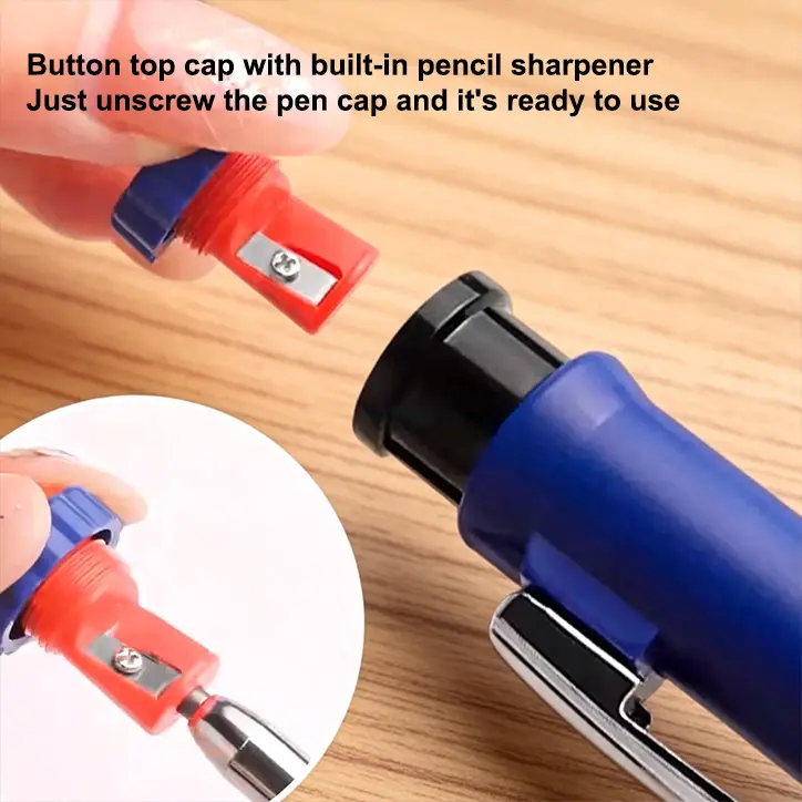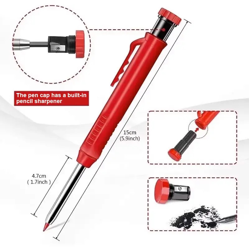 ·Deep Hole Marker Pencil With Sharpener: The 2pack deep-hole construction pencils adopts 45mm elongated tip design, which is more convenient to mark in the small hole or in other tight areas. In addition this, the woodworking pencils come with a built in sharpener screwed into the top of each work pencil for providing nice precision at all times