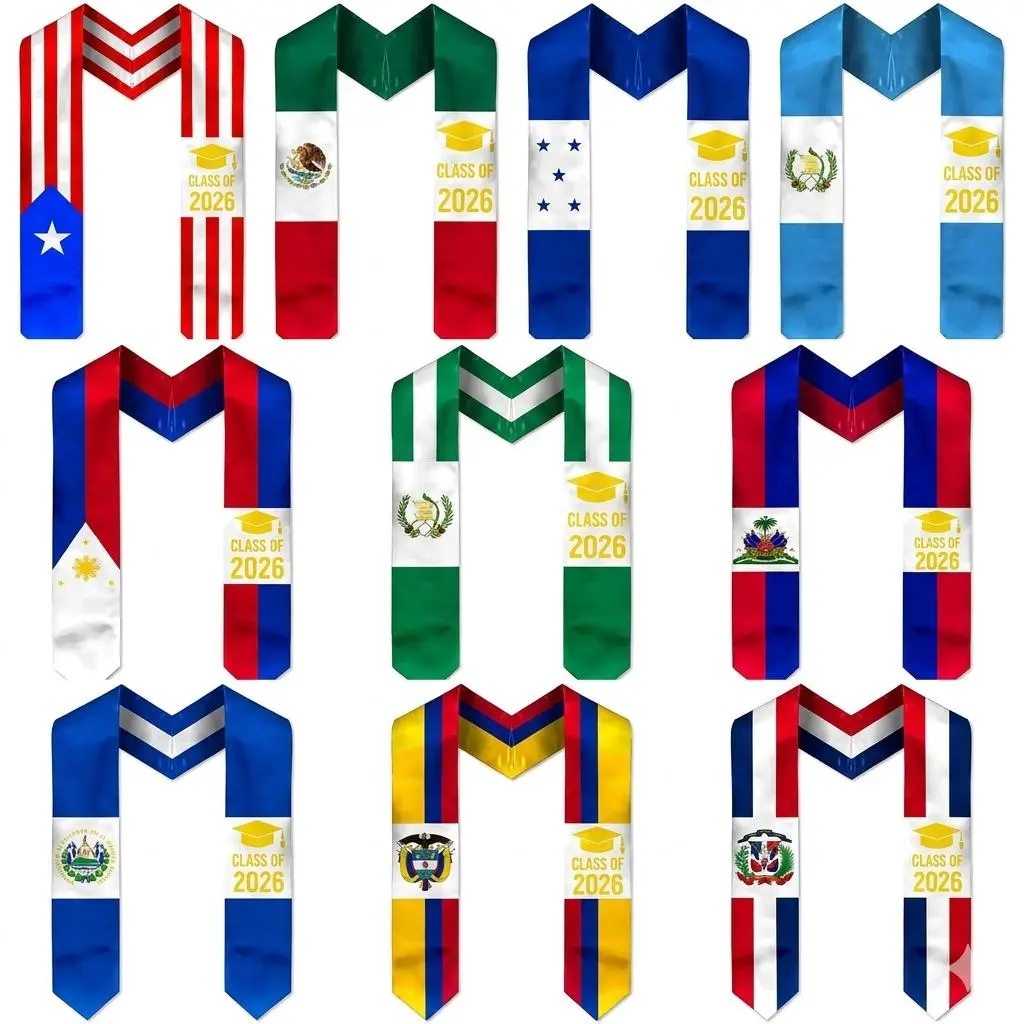 5. Flag Graduation Sash – Premium Graduation Stole for International Students, Class of 2026 Graduation Accessory