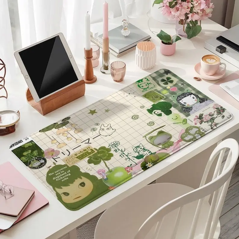 [SALE UP TO 50% + FREE SHIP] Cute Kawaii Frog Desk Mat, XXL Aesthetic Mousepad Gaming, Large Non Slip Extended Deskmat, Pastel Green keyboard Mouse Pad, Gift for Student