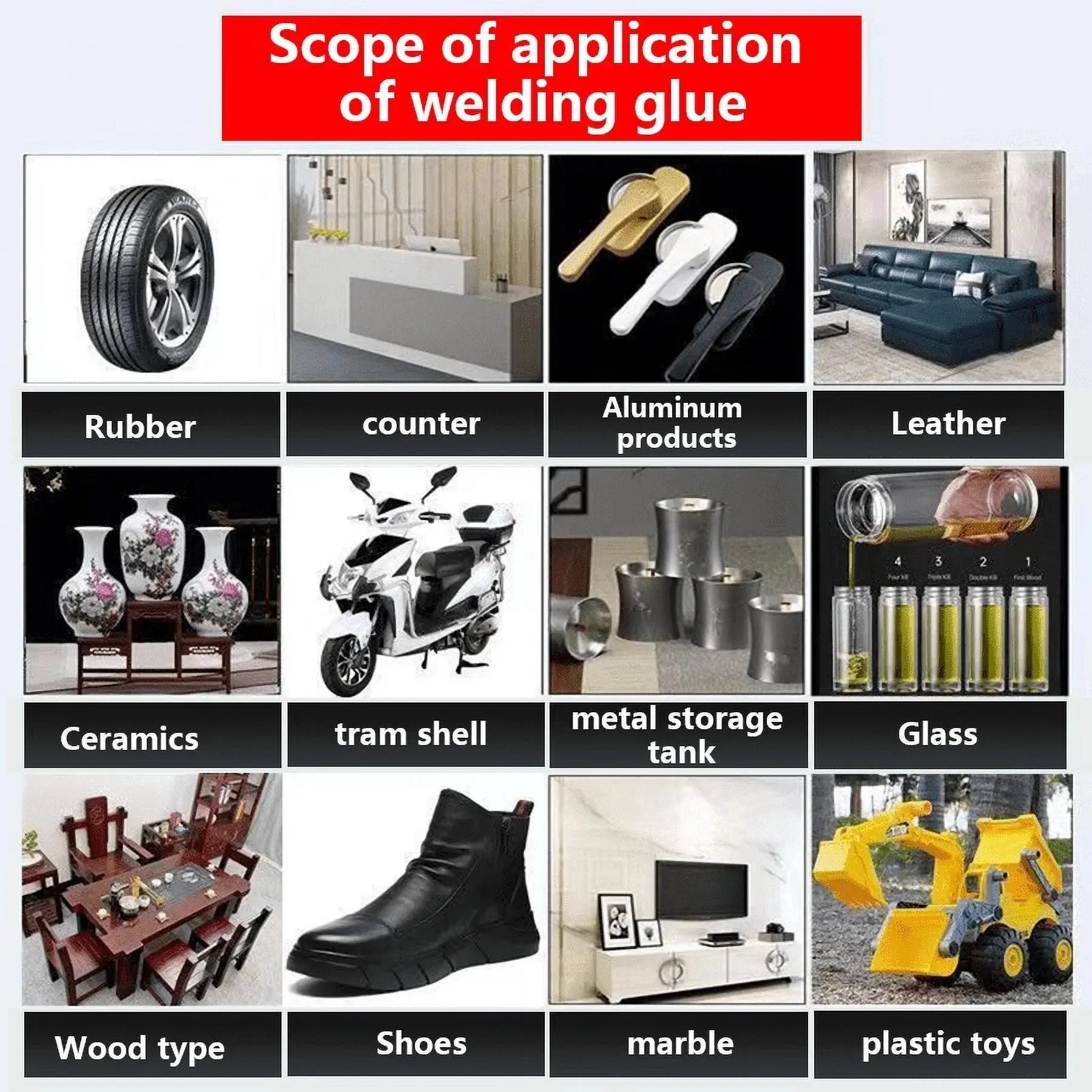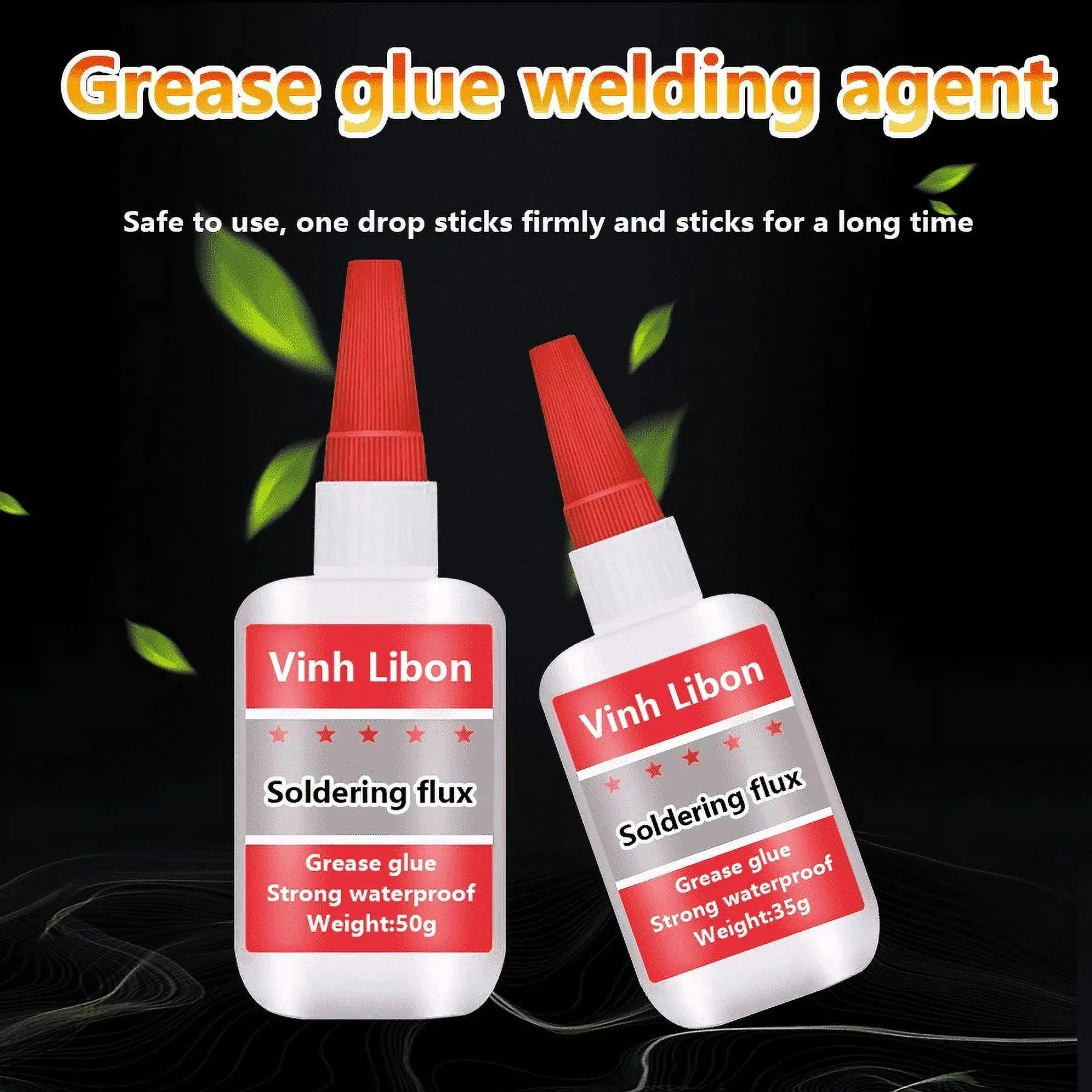 Strong Multi-Material: This welding-grade adhesive forms a firm bond across various materials including metal, plastic, wood, and ceramics, making it suitable for diverse repair tasks..Clear Quick-Drying: The transparent formula sets rapidly within 10-40 seconds and achieves full cure in 24 hours, offering weather-resistant and wear-proof properties..Integrated Soldering Flux: Featuring an integrated soldering flux, this glue strengthens joints without requiring additional flux, simplifying the application process..Oily Penetrating Formula: Its oil-based composition effectively penetrates material pores, ensuring a strong, long-lasting bond even on oily surfaces..Precise 50ml Dispensing: Supplied in a 50ml single-tube squeeze bottle with a fine tip, it allows for controlled application and minimizes waste during DIY projects and repairs.