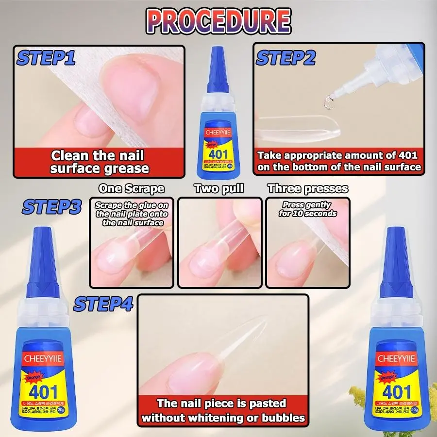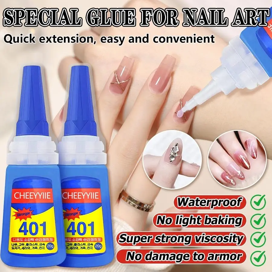 2-pack large capacity waterproof nail glue with quick-dry formula for efficient nail art application..Provides strong and long-lasting adhesion for press-on nails, false nails, and various nail decorations..Salon-grade professional quality suitable for both home use and beauty salon daily work..Transparent non-whitening design ensures natural and clean finish on all nail types..Flexible and shock-resistant bond prevents nails from falling off easily during daily activities.