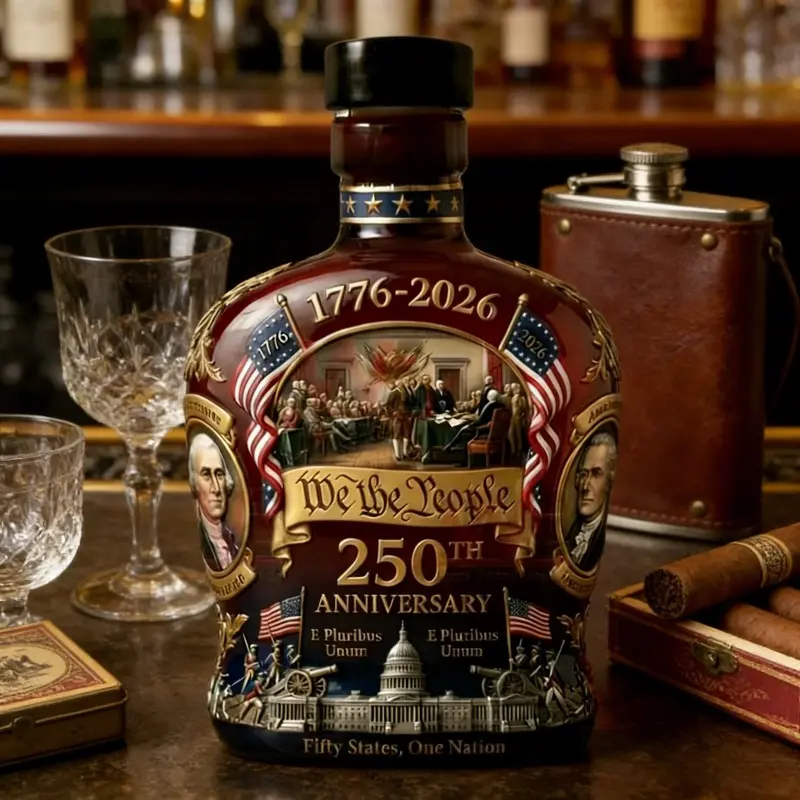 American 250th Anniversary Whiskey Bottle - 1776-2026 Commemorative Flask Suitable for Whiskey Collectors, Historical Gift for Decor, & Dining Display, 250 Years Celebration Edition