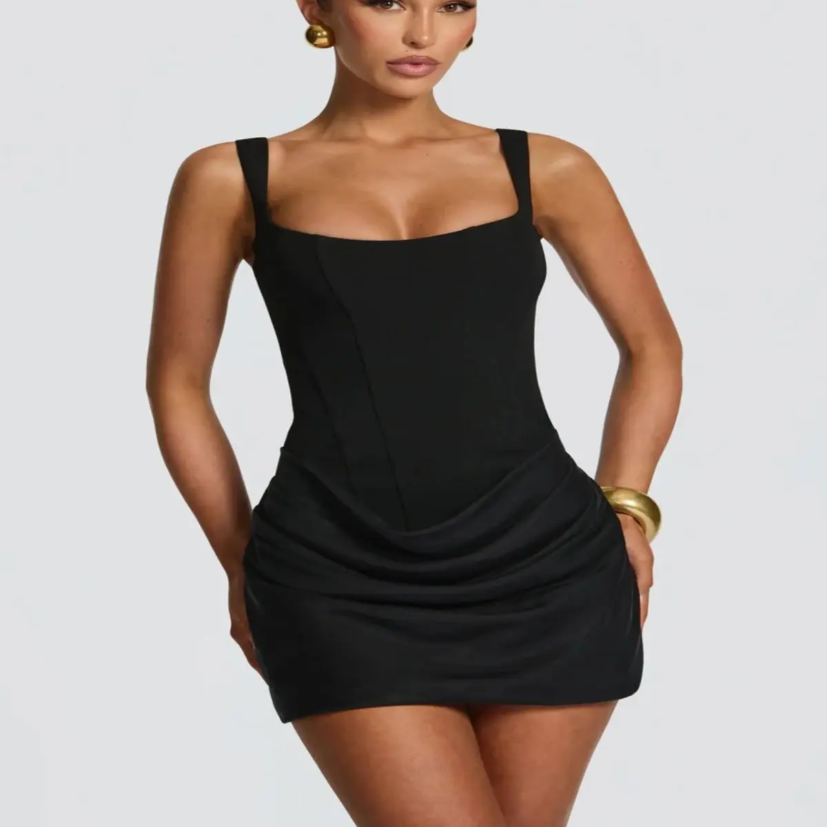 Aria Muse French Style Women Ruched Short Dress Fashion Summer Party Evening Gown Spaghetti Strap Bodycon Sexy Bandage Corset Mini Dress
