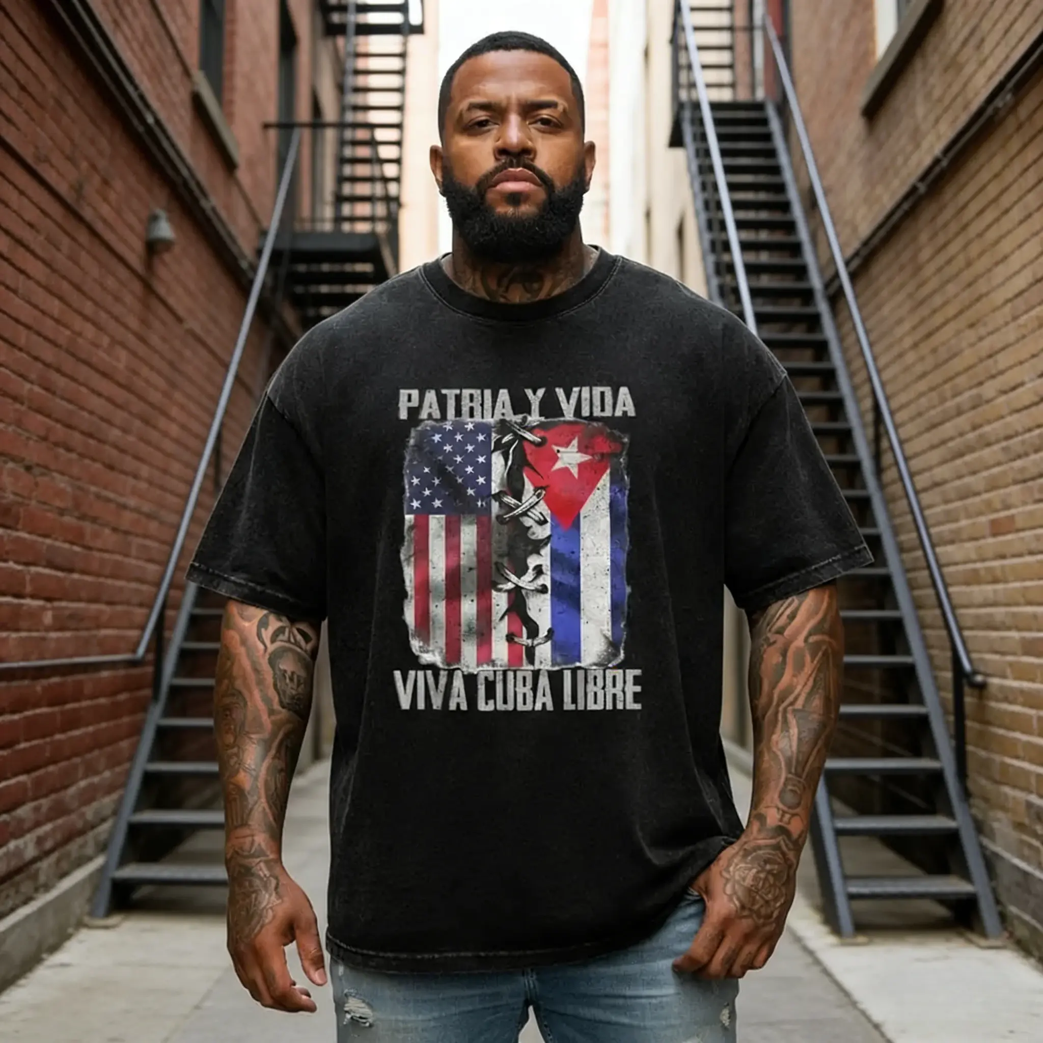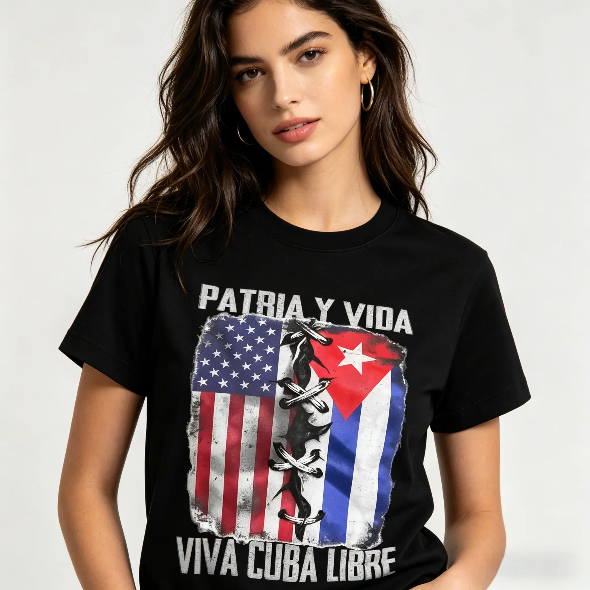 Patria Y Vida Viva Cuba Libre T-Shirt, USA Cuba Flag Stitched Graphic Tee, 100% Premium Cotton Cuban Pride Streetwear, Custom Printed Top for Men Women, Cuban Heritage Gift Shirt