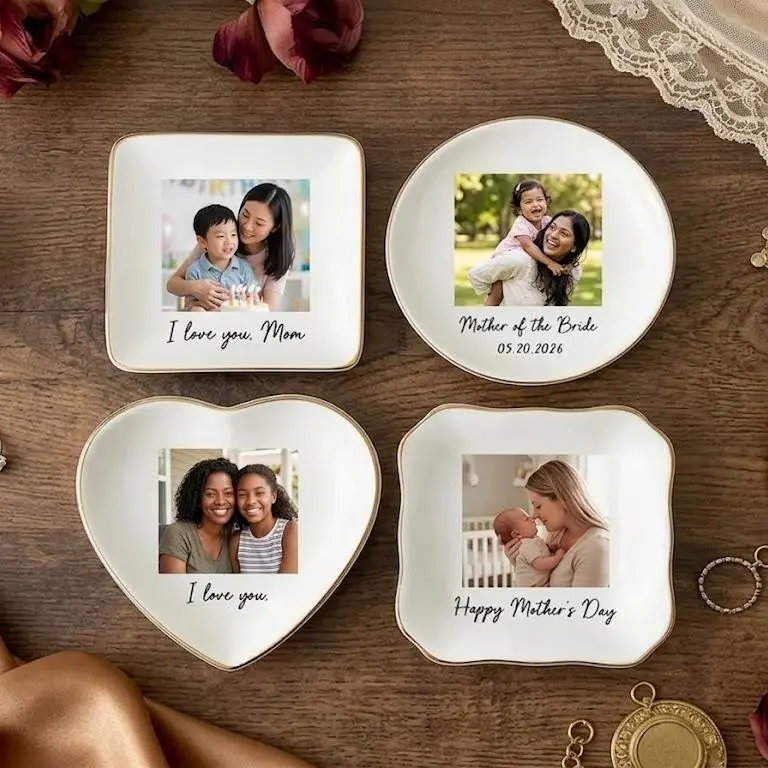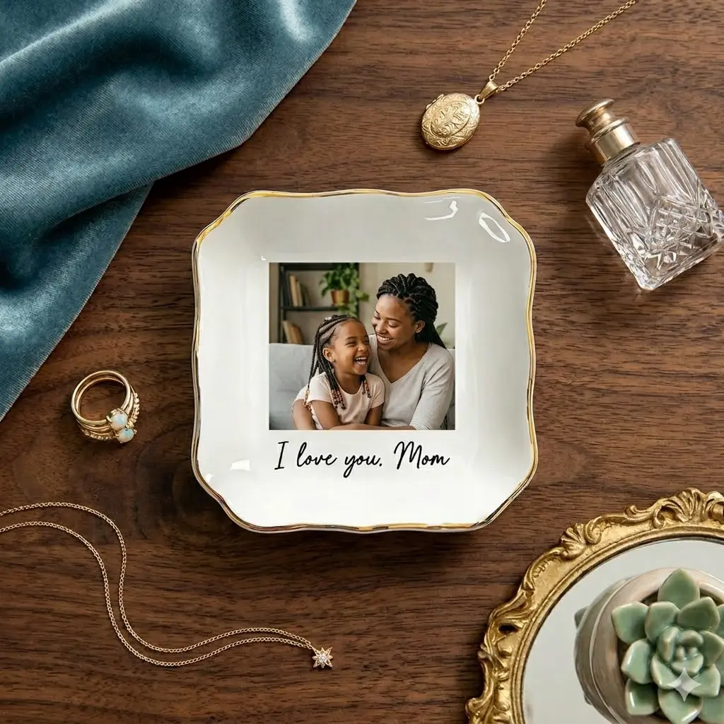 Personalized Photo Trinket Tray – Custom Ceramic Ring Dish, Mother’s Day Gift for Mom