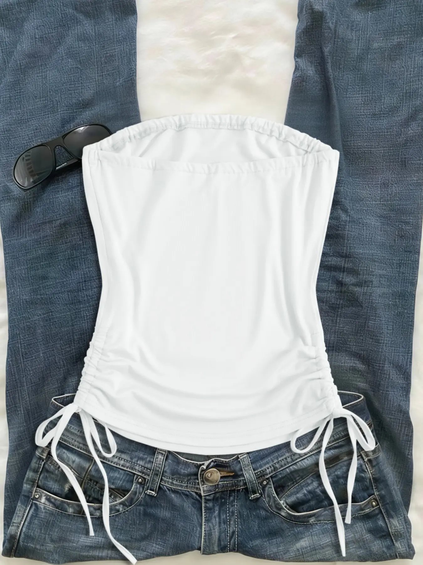 Y2K Style Drawstring Tube Top, Sleeveless Slim-Fit Crop Top, Summer Streetwear, Trendy Fashion, Perfect for Daily Wear & Layering