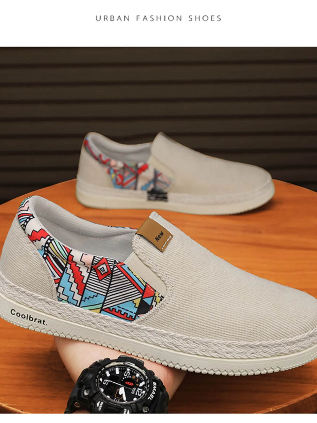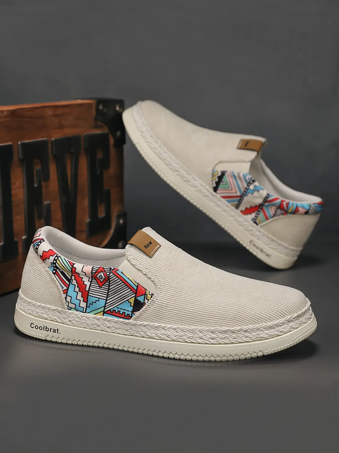 Men's Mint Ethnic Style Slip-On Canvas Shoes, Breathable Comfortable Loafers, Summer Footwear, Sizes 39-44