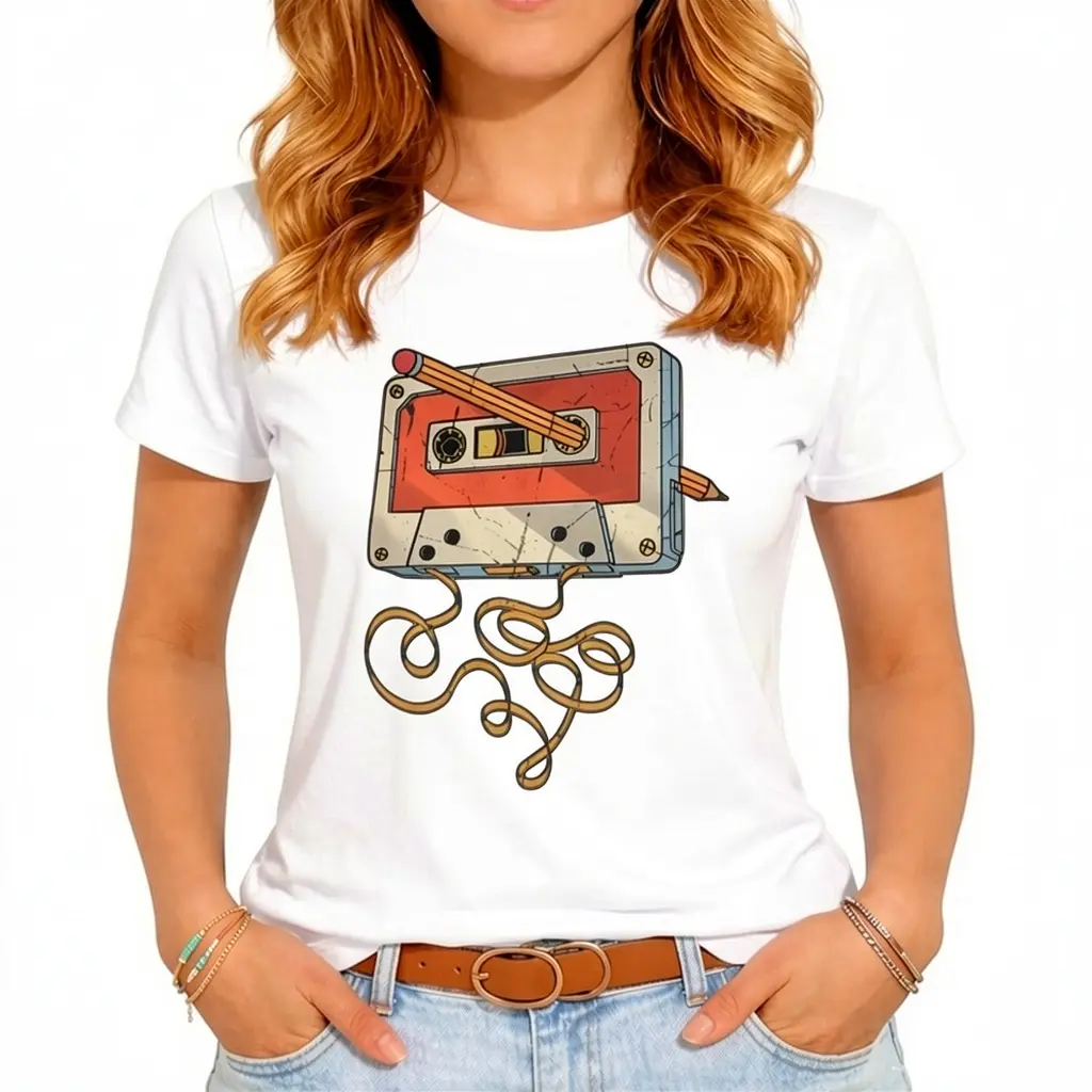 Funny Graphic T-shirt Men's Vintage Cassette Tape Repair. Soft Cotton Retro Music Tee. 80s 90s Nostalgia Hipster Top. Cool Birthday Gift for Him. Classic Crewneck Short Sleeve Shirt.