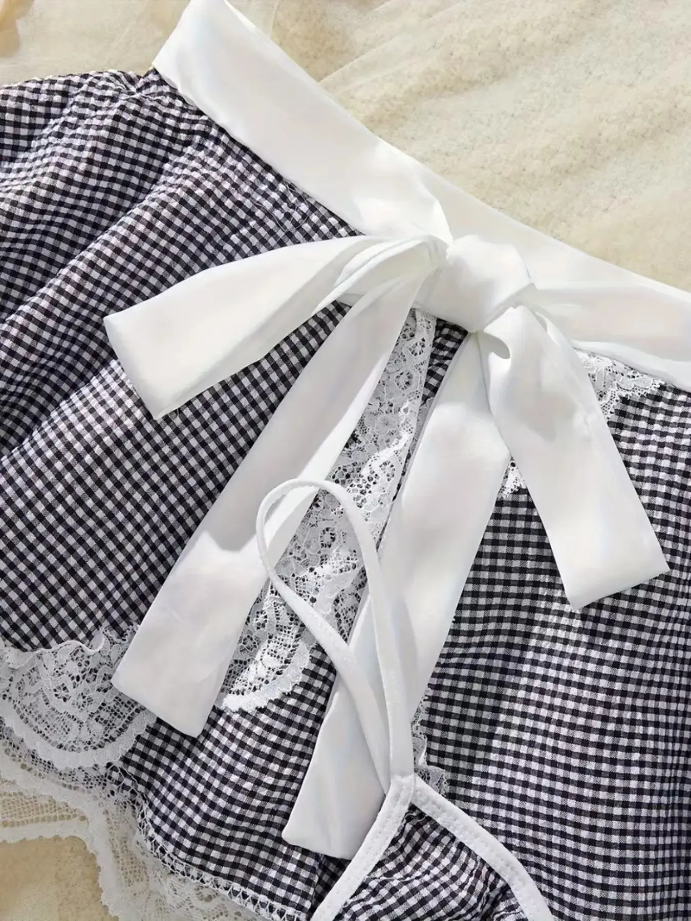 [Complete Set]: This lingerie set includes top, apron, hairband, necklace, and panties for a complete look.