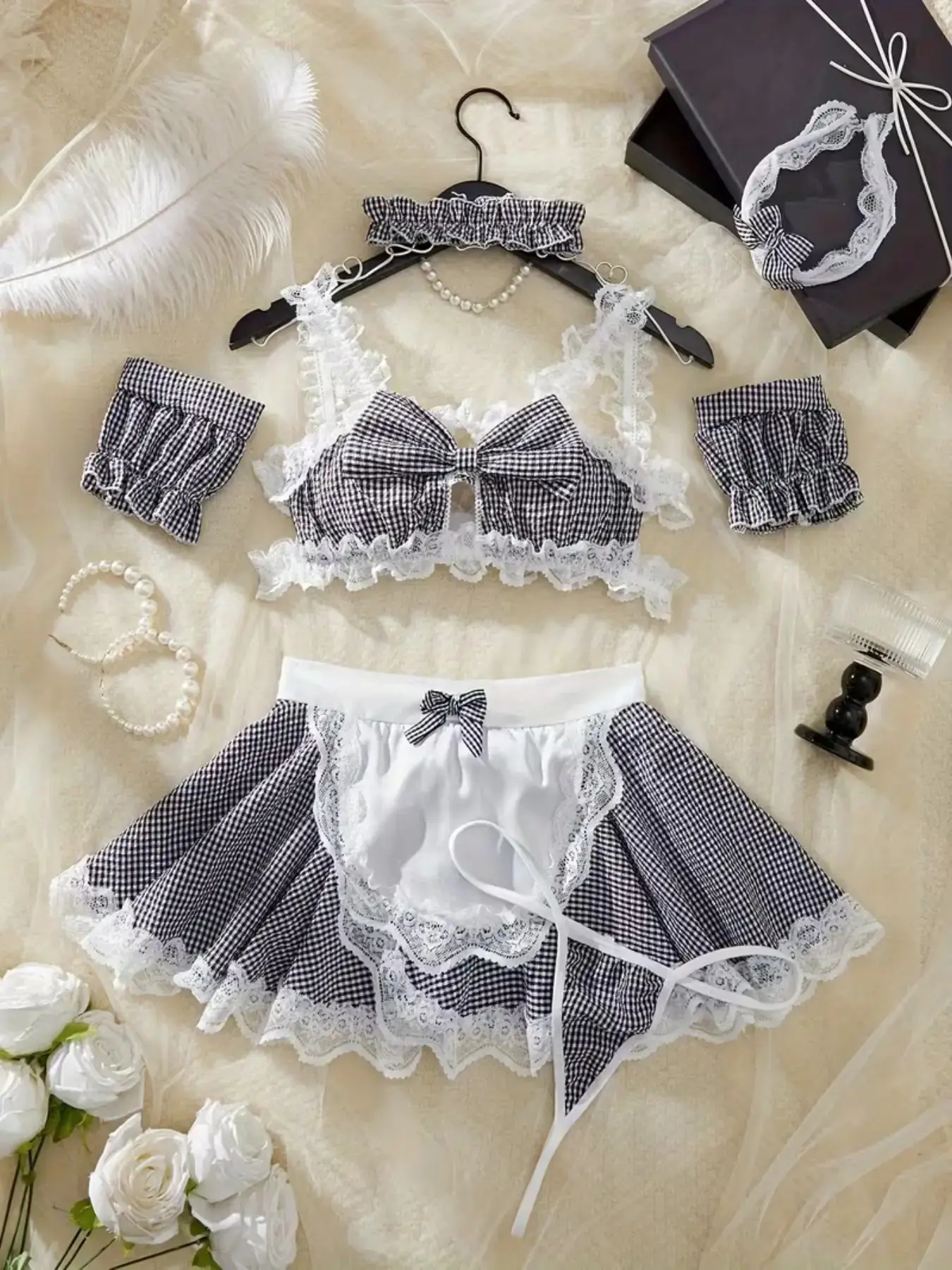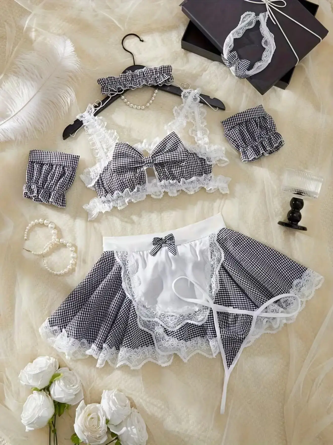 Sexy Lingerie Set Includes Top Apron Hairband Necklace Panties, Women's Underwear Collection, Comfortable & Stylish