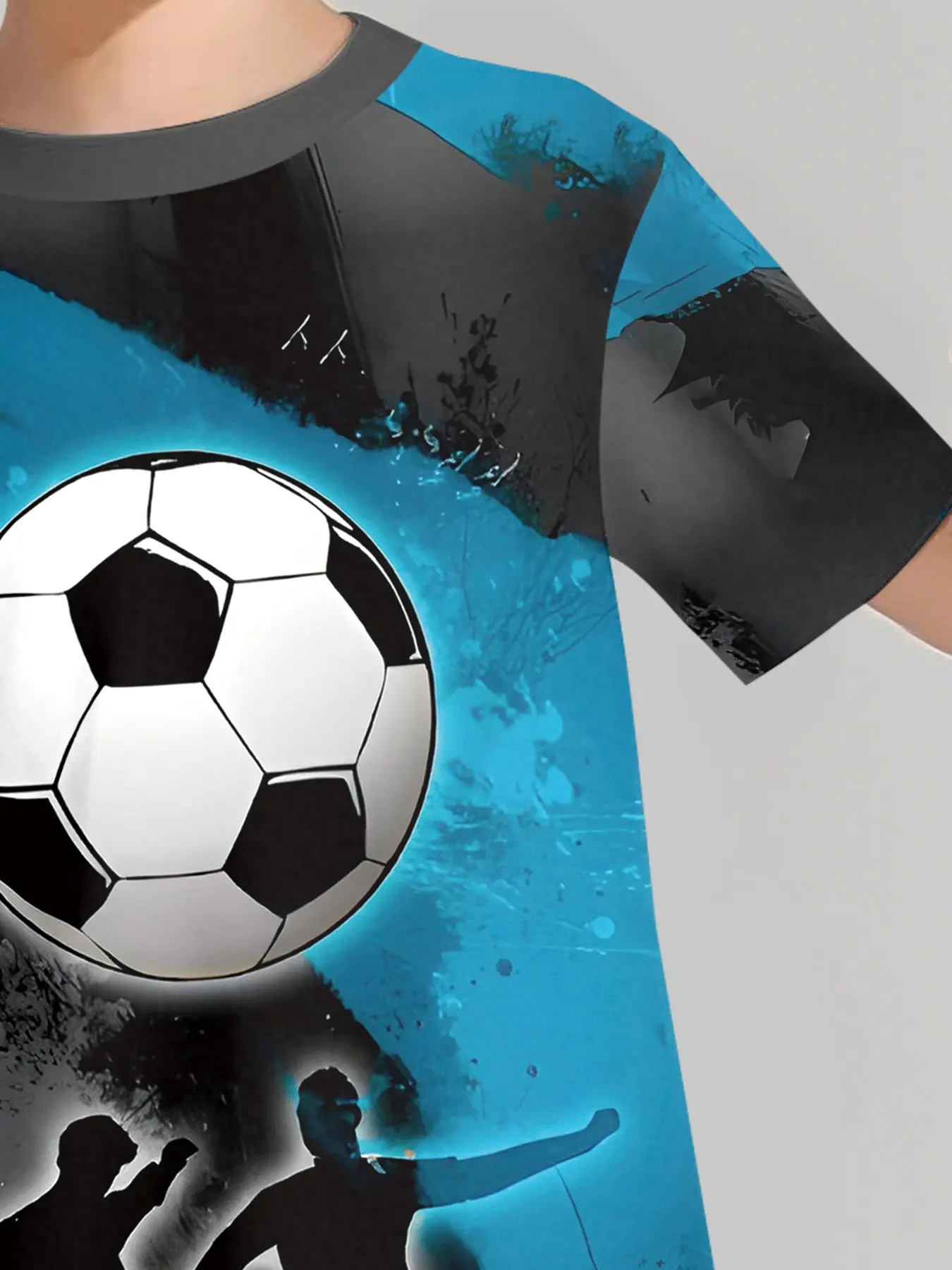 5. Ink-style short-sleeve and shorts two-piece set for football players, 100% polyester casual loose-fit set, summer fun printed pattern, outdoor sports T-shirt set, perfect gift for boys
