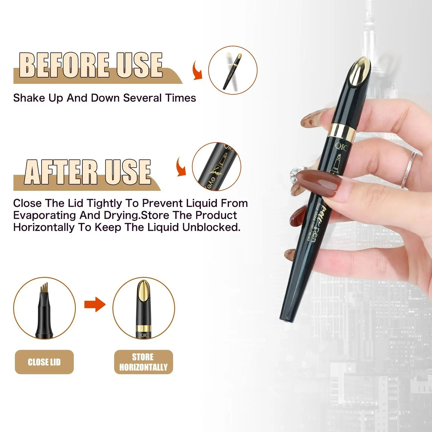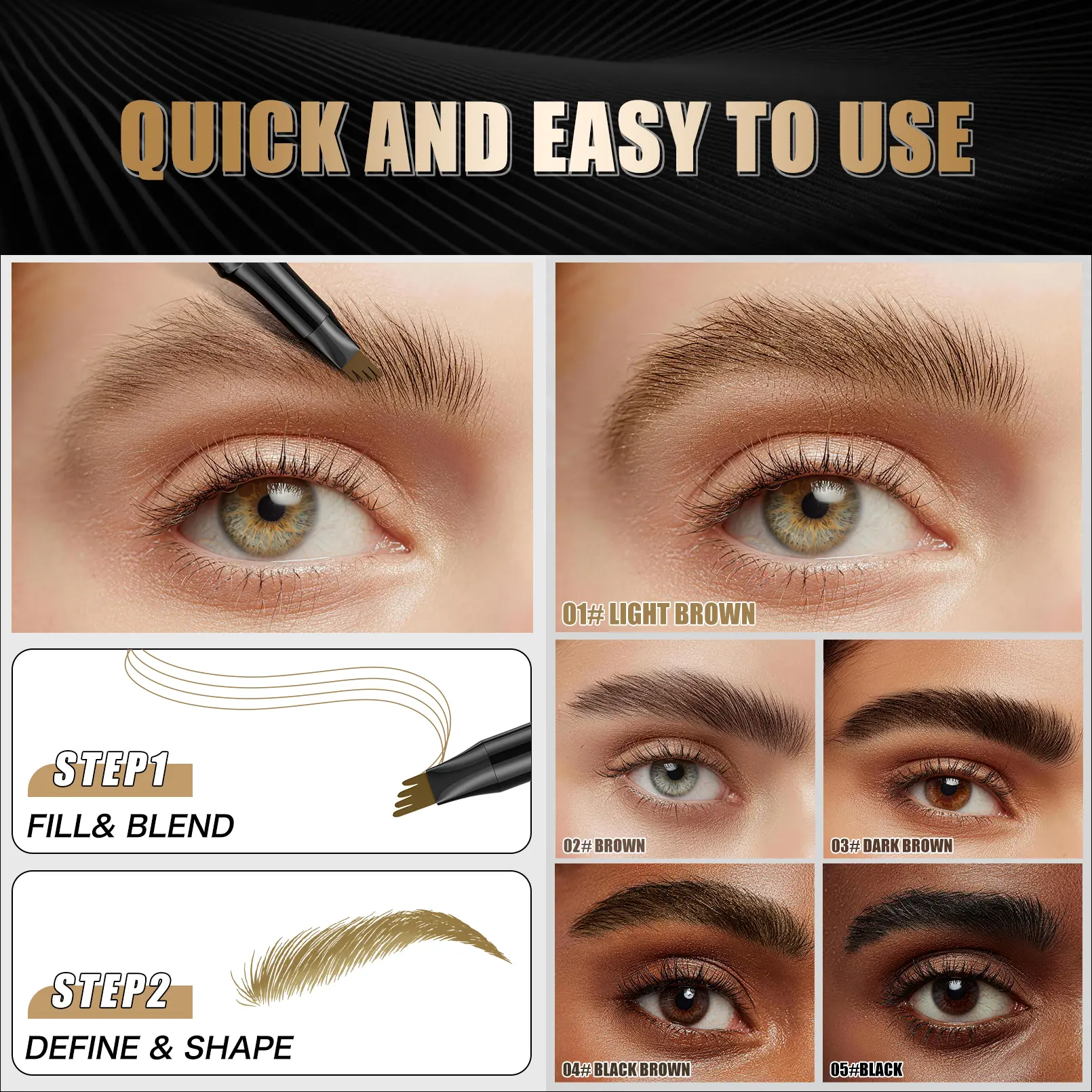 Waterproof 4-Prong Eyebrow Pencil, Fine Hair Stroke Eyebrow Pencil, Easy Control Natural Filling Tool, Long Lasting Smudge Proof for Daily Quick Makeup for Beginners.