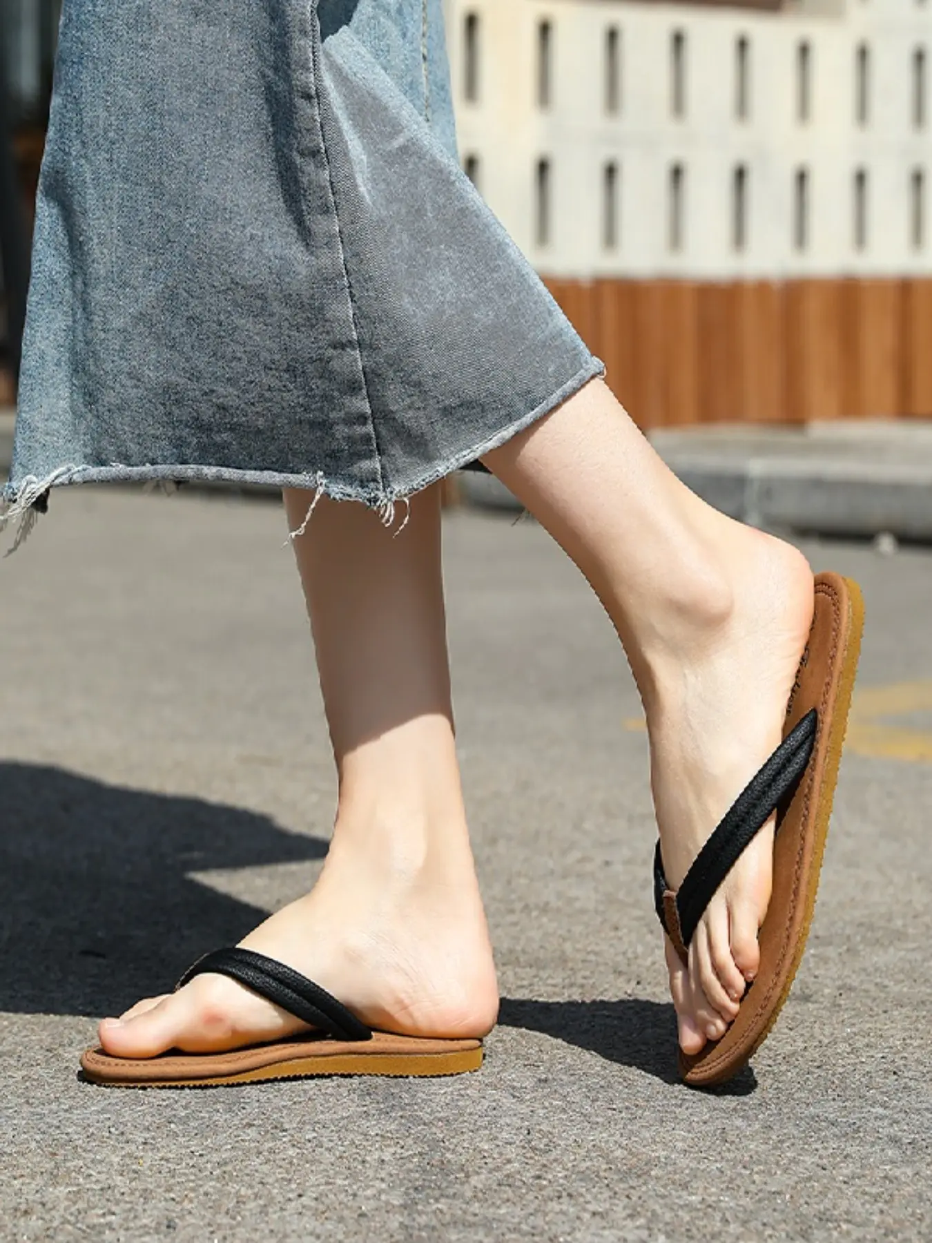 Korean Style Versatile Sandals for Women, Summer Outdoor Fashion, Colorblock Flat Slip-On Beach Shoes, Comfortable and Stylish