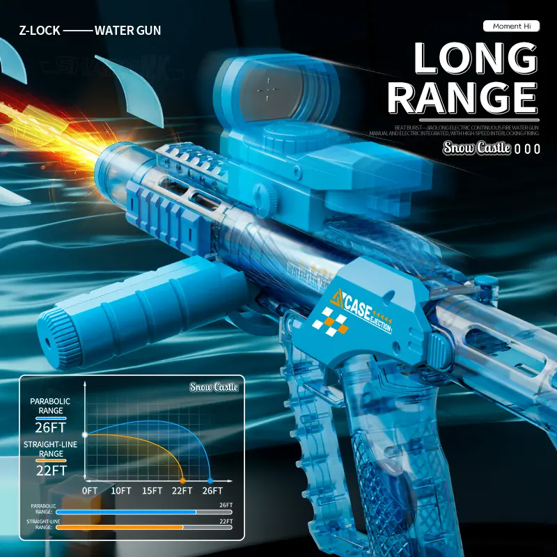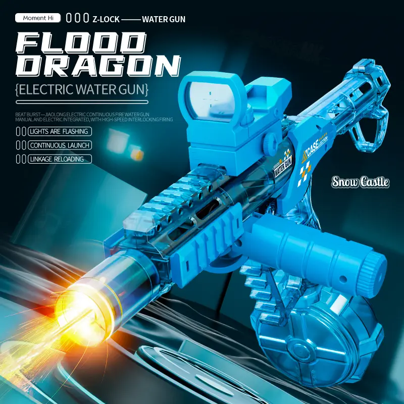 Flood Dragon Automatic Electric WaterGun IP67 Waterproof, with Large Capacity Powerful Spray Super LongShooting & Lighting Function USB Charging CableDurable FlameSpray , SummerParty Outdoor Pool and beach toys