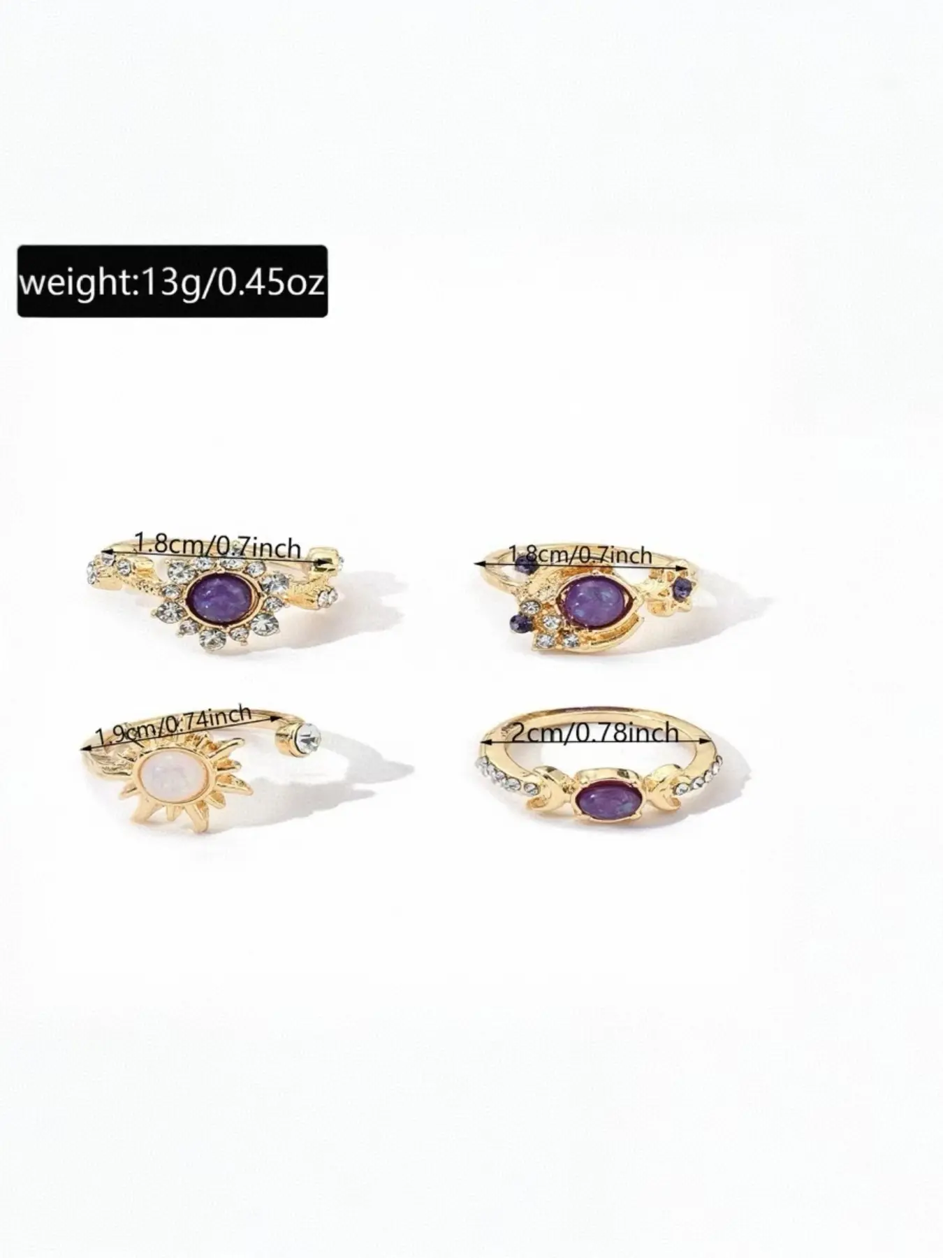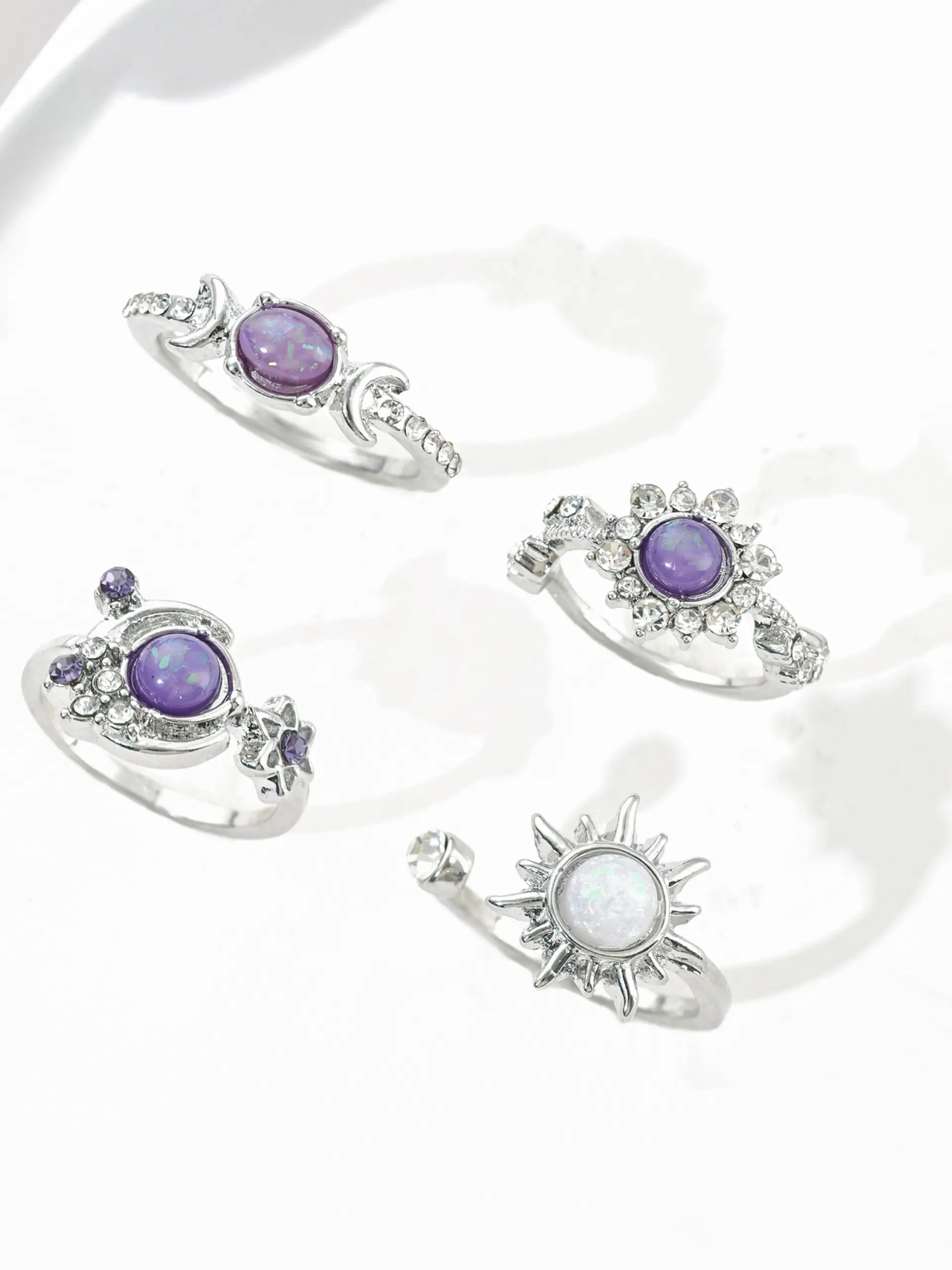 5. Fashionable Gemstone Ring Set, Sun Moon Diamond Accent Luxury Geometric Rings, High-End Style Jewelry for Women