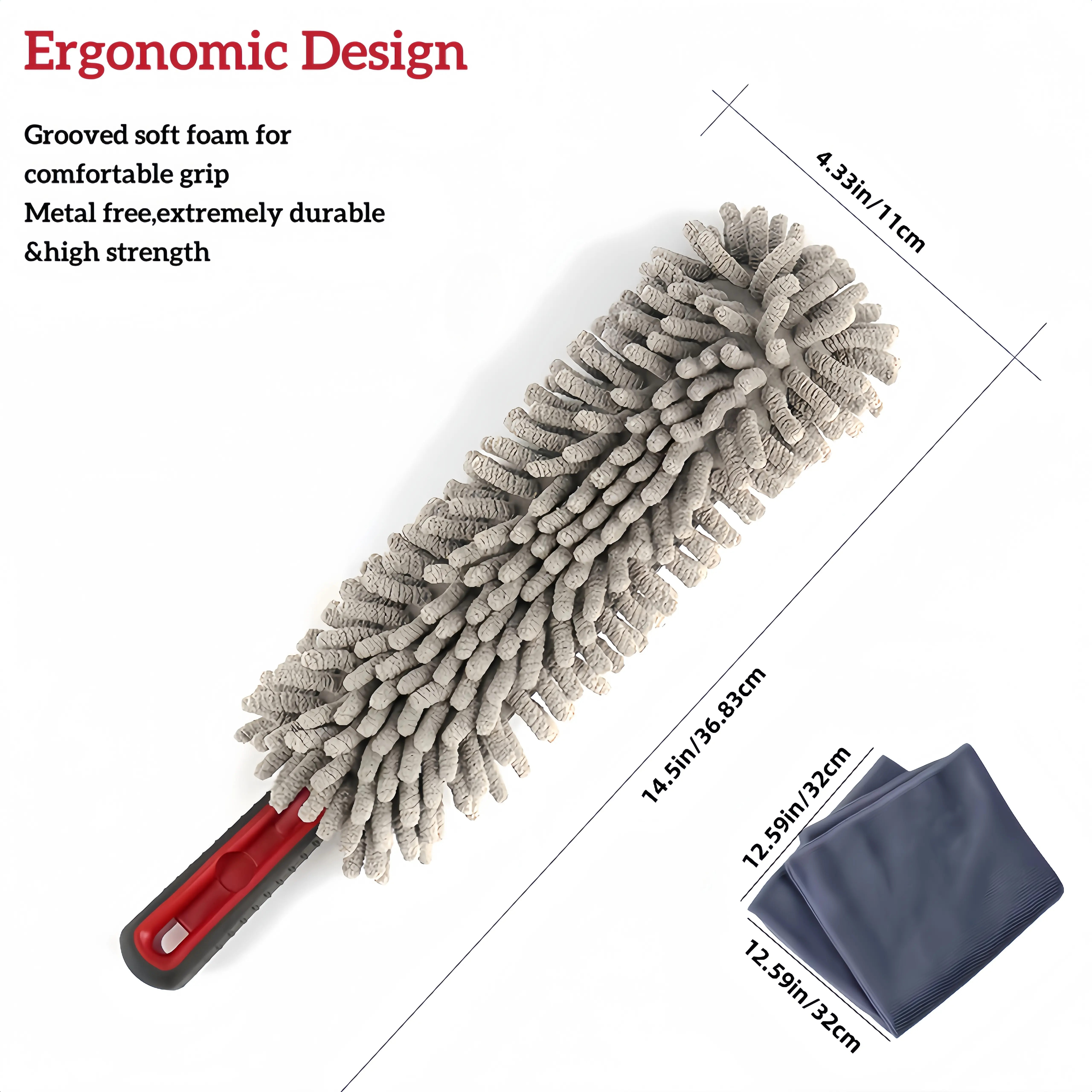 Microfiber Car Interior Duster Scratch-Free with Bonus Towel Gray