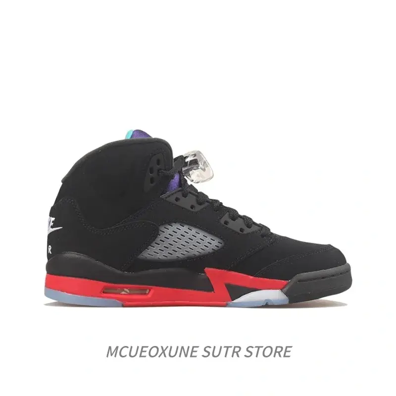 Mid-Top Vintage Basketball Sneakers in Black and Red, Cozy Cushioning, Anti-Slip, Durable