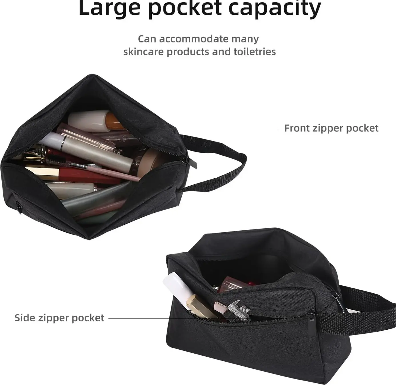 This travel toiletry bag measures 8.27 x 5.9 x 2.76 inches, offering ample space while remaining lightweight. Perfect for easy transport, it holds toiletries, makeup, toothbrush, toothpaste, razor, shampoo, and other essentials. Ideal for daily travel needs, it's designed for both women and men.