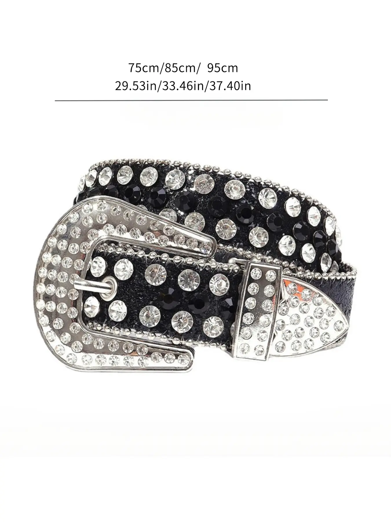 Rhinestone Studded Buckle Belt for Kids & Teens - 75-95cm Adjustable Sparkly Crystal Belt, Shiny Party & Performance Accessory