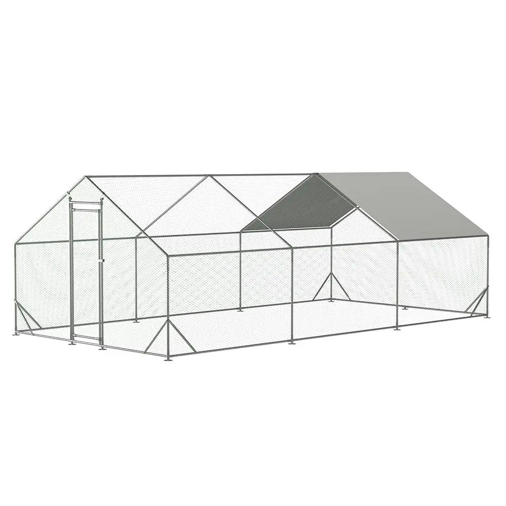 5. Large Metal Chicken Coop,3x6x1.95m,Walk-in Poultry Cage Hen Run House,Rabbits Habitat Cage,Flat Roofed Cage with Waterproof and Anti-Ultraviolet Cover for Outdoor