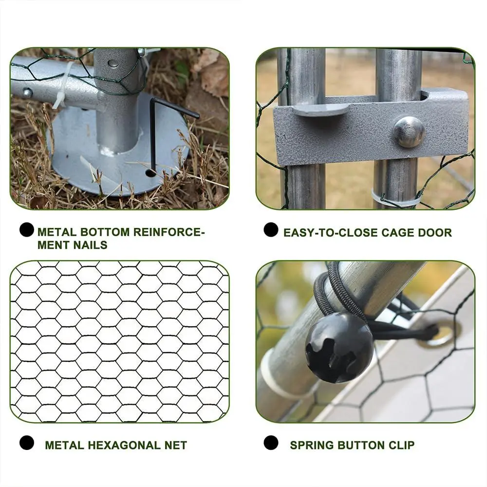 [Robust Construction]: Experience unparalleled durability with our Large Metal Chicken Coop, featuring a high-quality steel frame 20% thicker than competitors. Ideal for long-term outdoor use.
