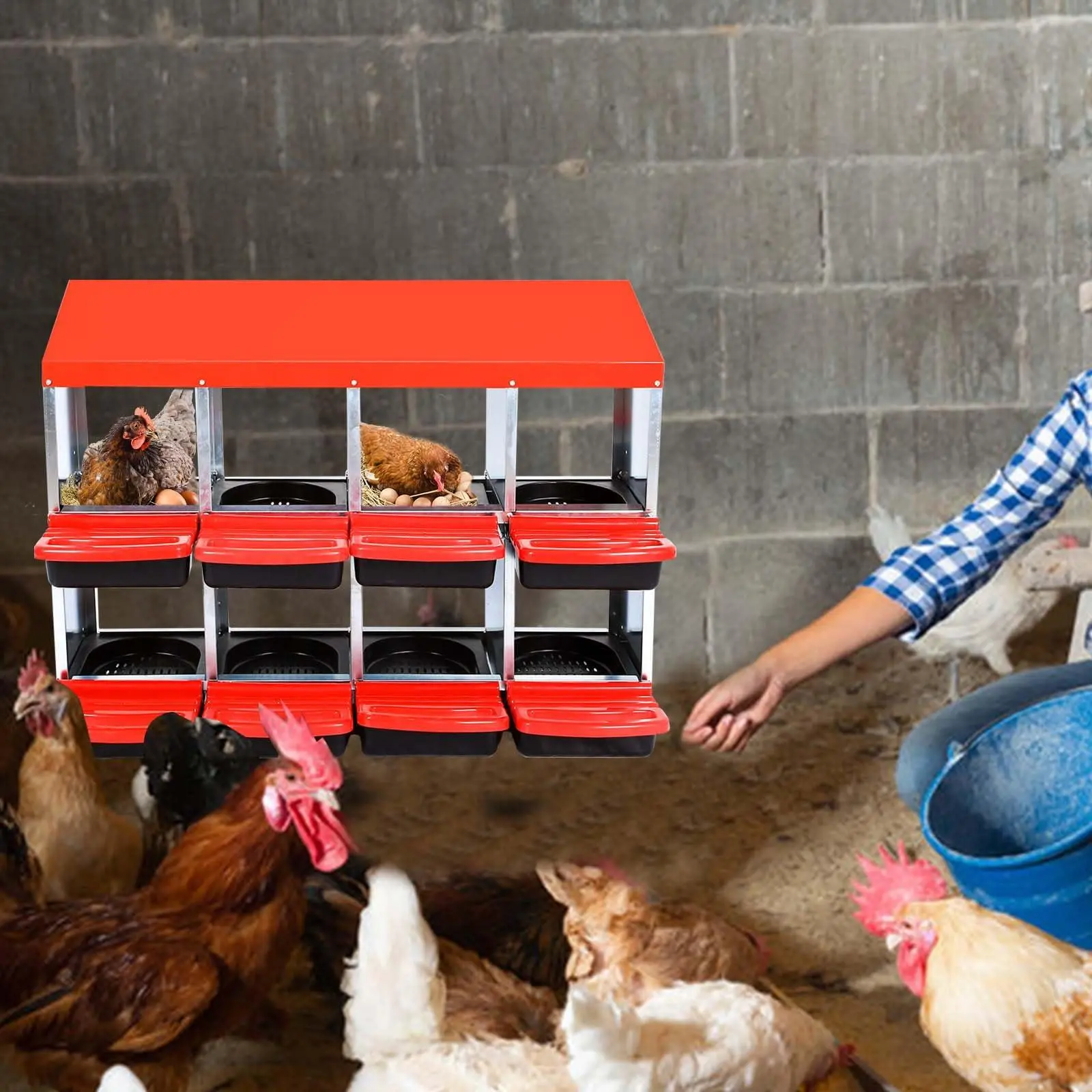 【Sturdy and Durable Construction】Our chicken nesting boxes are expertly crafted from high-quality galvanized steelt, easy-to-clean plastic, ensuring long-lasting use in any weather conditions. This sturdy construction prevents rust over time, making it a reliable choice for your poultry needs. Each spacious laying box features a thoughtfully designed ventilated structure that promotes fresh air circulation while keeping the nesting environment cool and dry, ensuring ultimate comfort for your he.