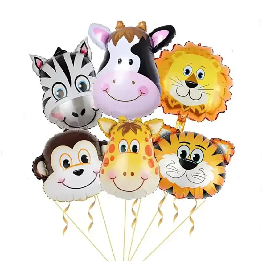 6pcs/set 16 inch Mini Animal Head Foil Balloon Forest Tiger Lion Zebra Balloon JungleWild Animal Theme Birthday Party Decoration