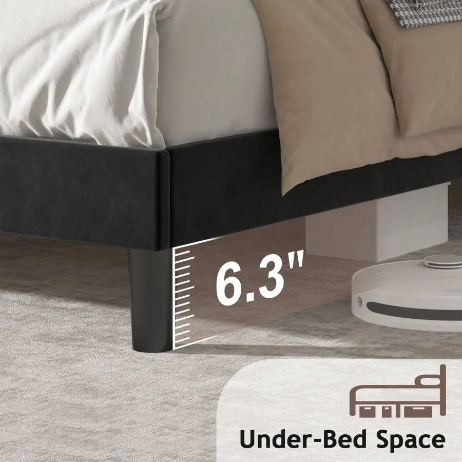 [Comfortable Wingback Headboard] The upholstered bed frame features a wingback headboard with soft velvet fabric for added comfort and extra protection while sleeping, helping to minimize the risk of falling and making this bed frame the highlight of your bedroom.