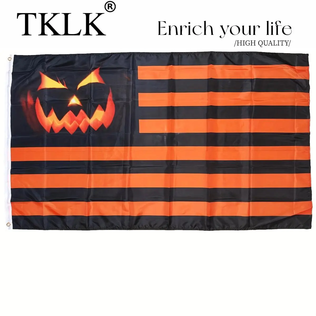 3x5ft Halloween Flag Smiling Jack-O-Lantern, Durable Polyester Outdoor Garden Decor with Metal Grommets for Porch Party, Black Wall Hanging Tapestry