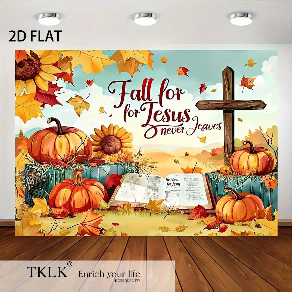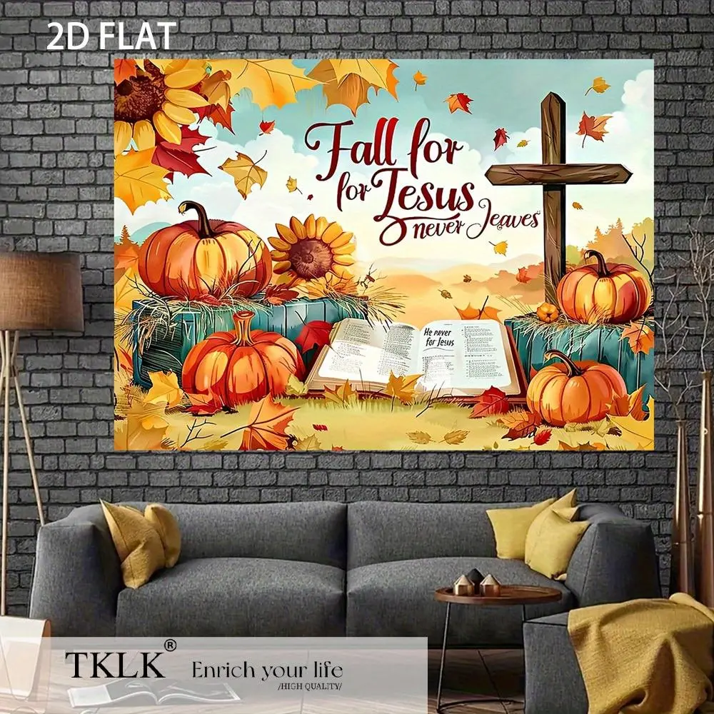 1pc Large Thanksgiving Church Banner 39x59 Inch, Fall Decor with Pumpkins Sunflowers Cross & Bible, Easy Hang No Electricity Needed, Durable Polyester for Religious Harvest Party Backdrop Home Worship