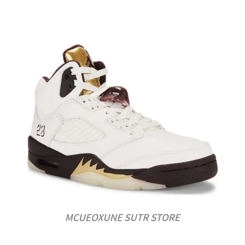 ✨ These sneakers boast a retro high-top design, perfect for basketball enthusiasts. The white and metallic gold color scheme adds a classic yet modern touch. Ideal for those who appreciate timeless styles. The high-top design provides a snug fit, enhancing your game performance.