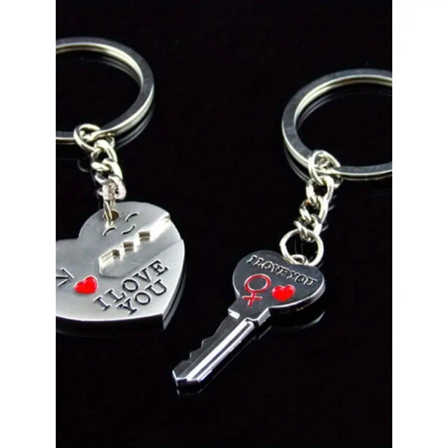 2pcs Set Men Women Cute Heart Key Keychain Couple Key Ring Lovers Key Chain Jewelry Accessory Gift