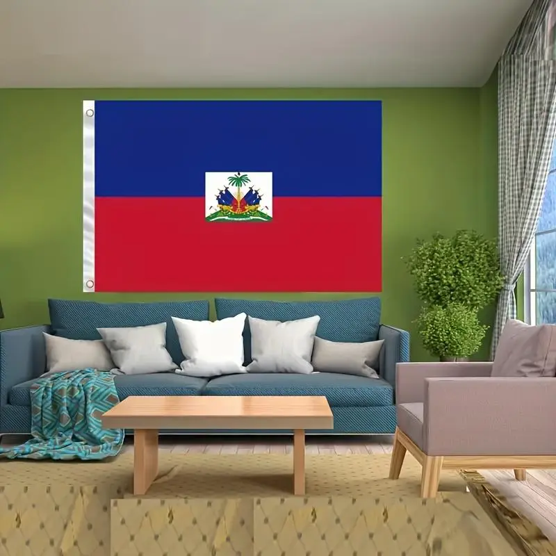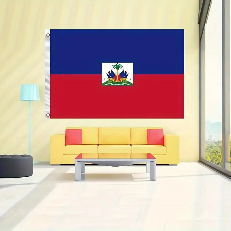 Double Side Haiti National Flag 3x5 Ft, Durable Polyester Hanging Flag with Brass Grommets, Fade Resistant Vivid Colors for Outdoor Home Decoration