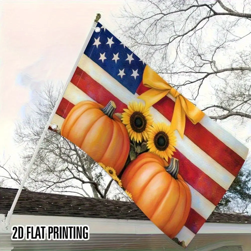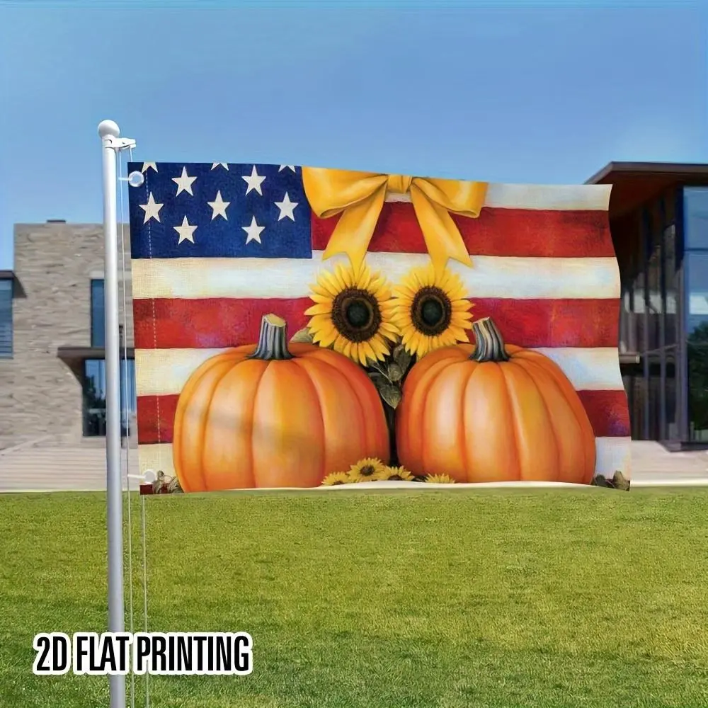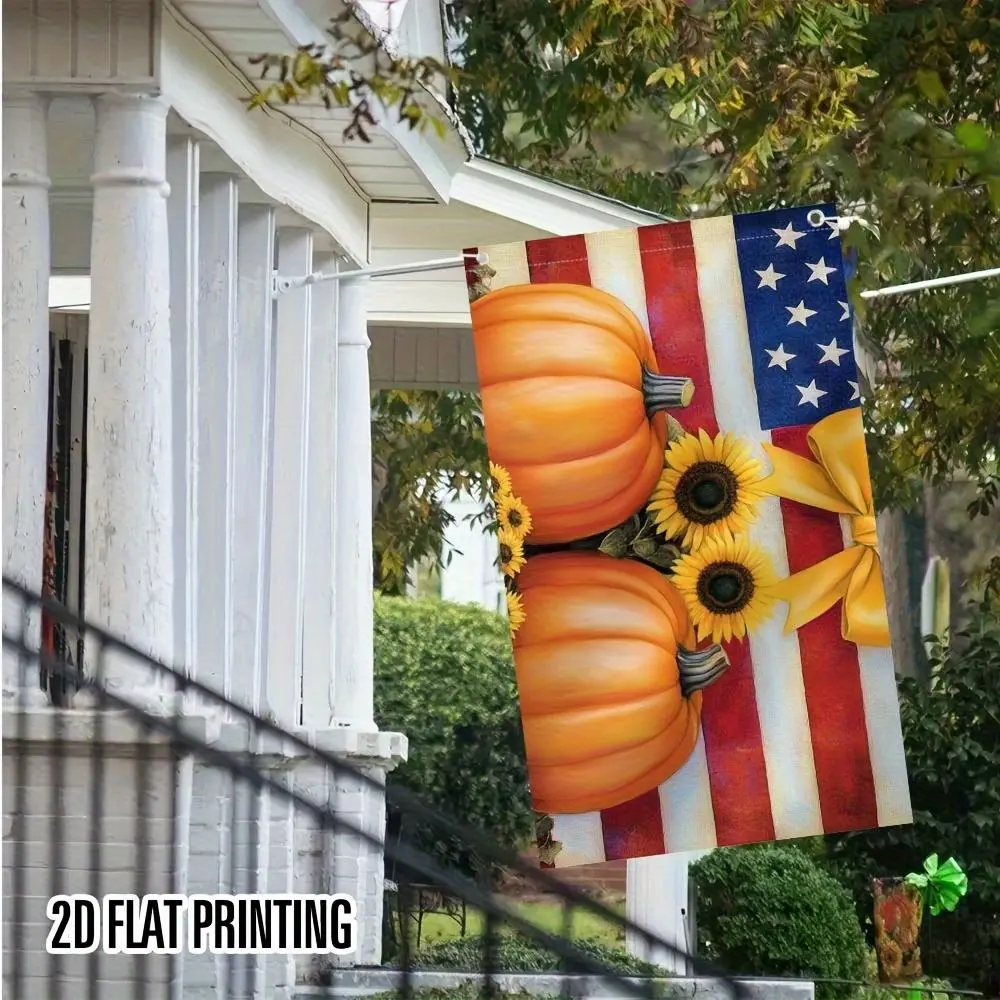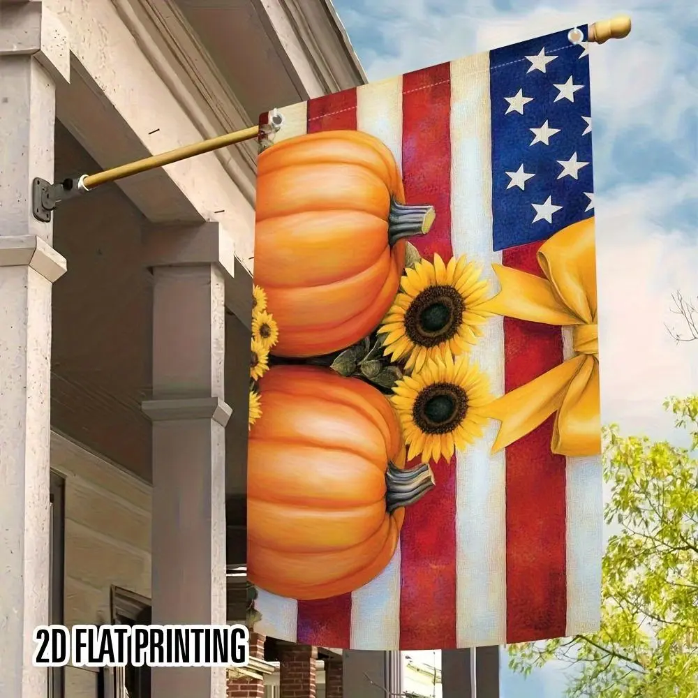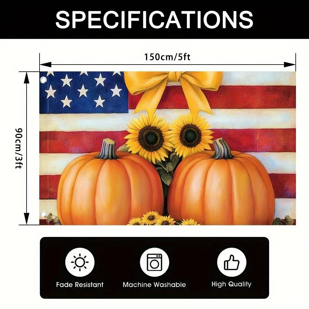 1pc Pumpkin Harvest American Flag Door Banner, Durable Polyester Outdoor Banner with Rivets, Bright Fall Decor for Thanksgiving Halloween & Patriotic Parties