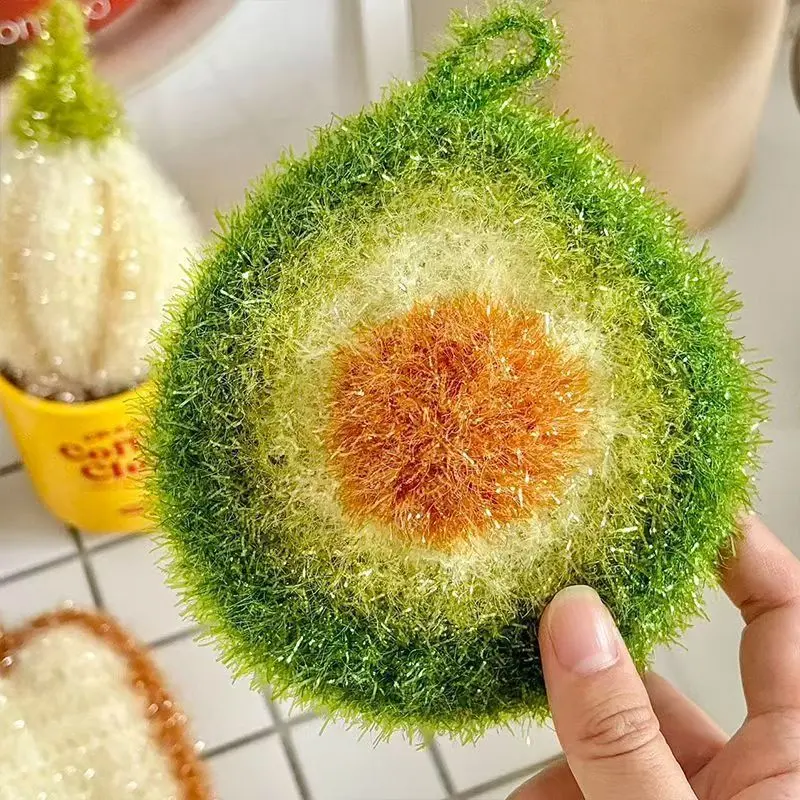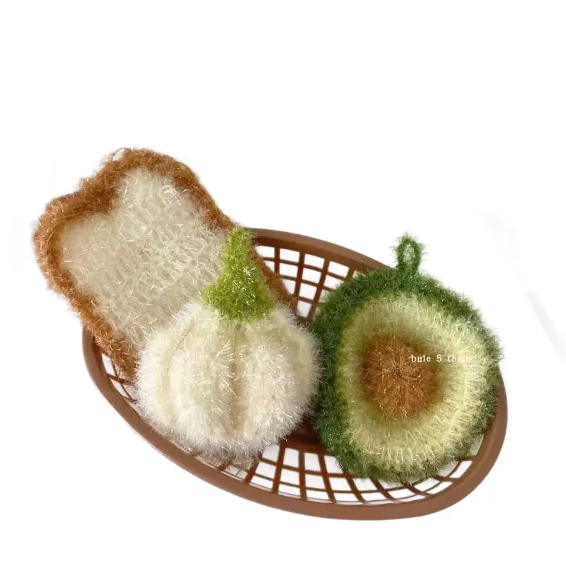 [3-Pack] Kitchen Cleaning Dishcloths Imitation Garlic Bread Dishcloths Avocado Scouring Pads Hand-Woven Cloths Sponges for Efficient Cleaning
