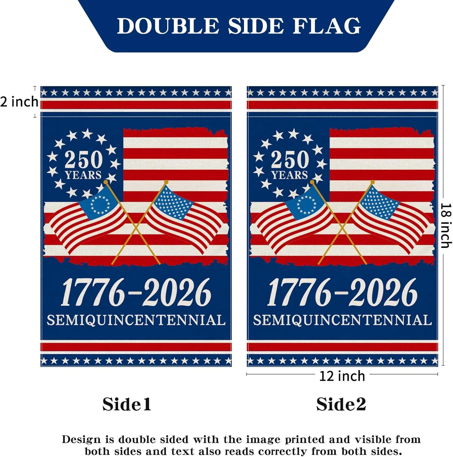 ·1 Pcs 12 x 18 Inch 250 anniversary usa garden flag (Not Include Garden Flag Holder Stand)