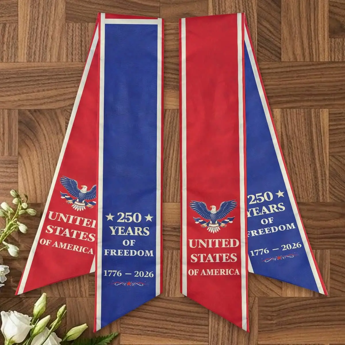 USA 250th Anniversary Patriotic Sash, American Independence Celebration Ribbon Freedom 1776-2026 4 of July Decor USA Wreath Sash