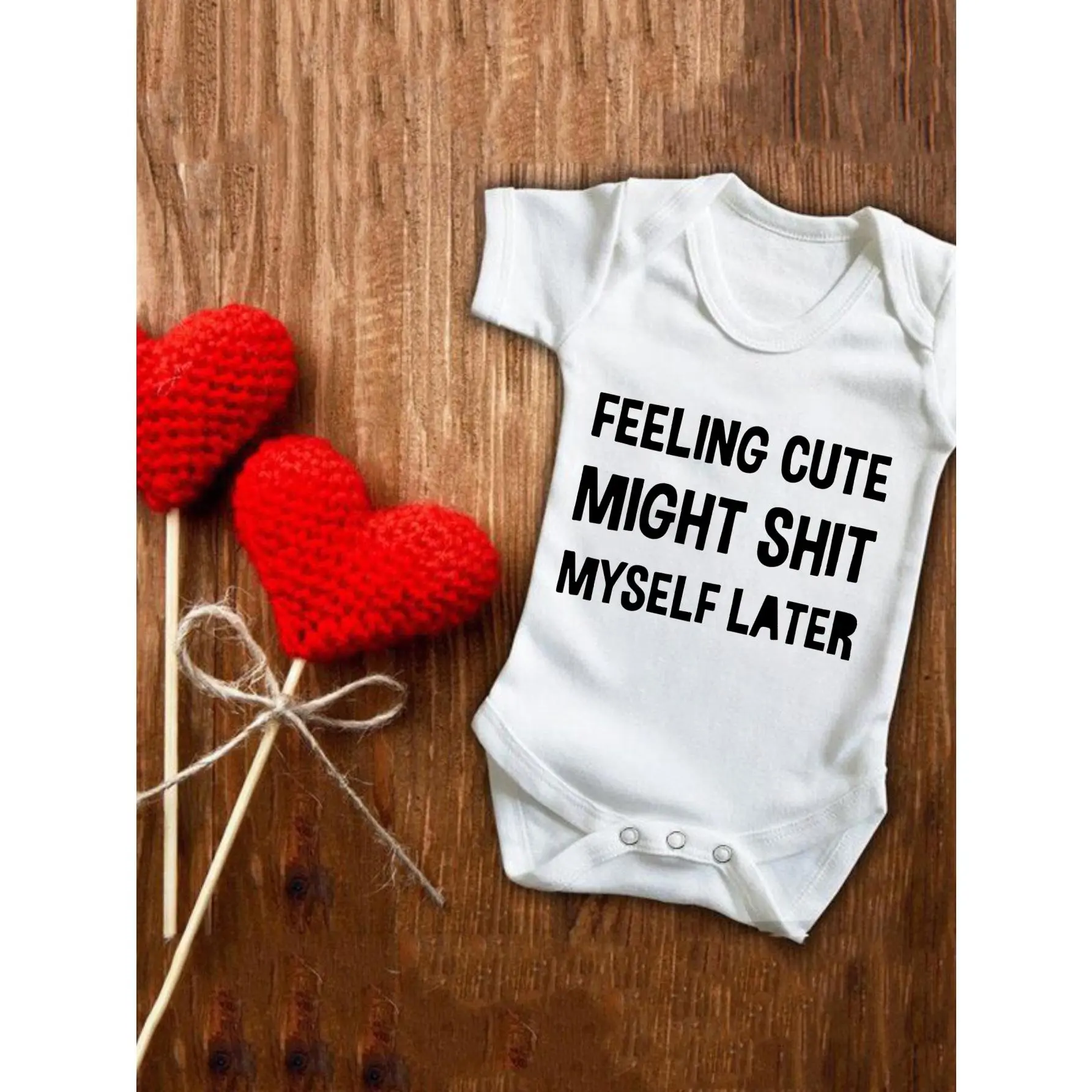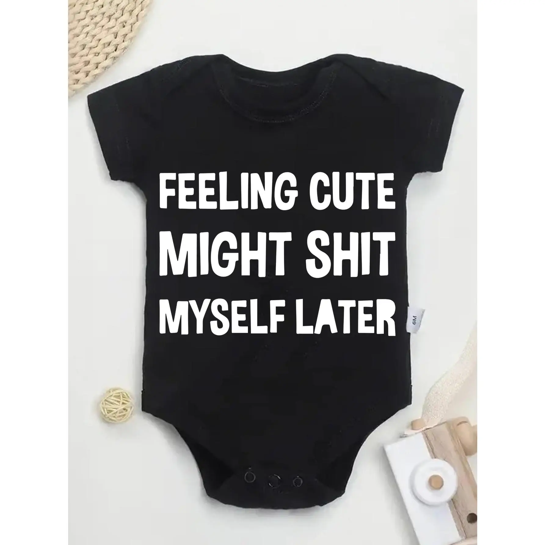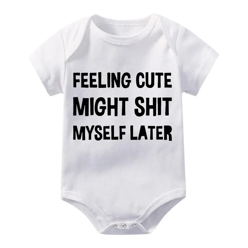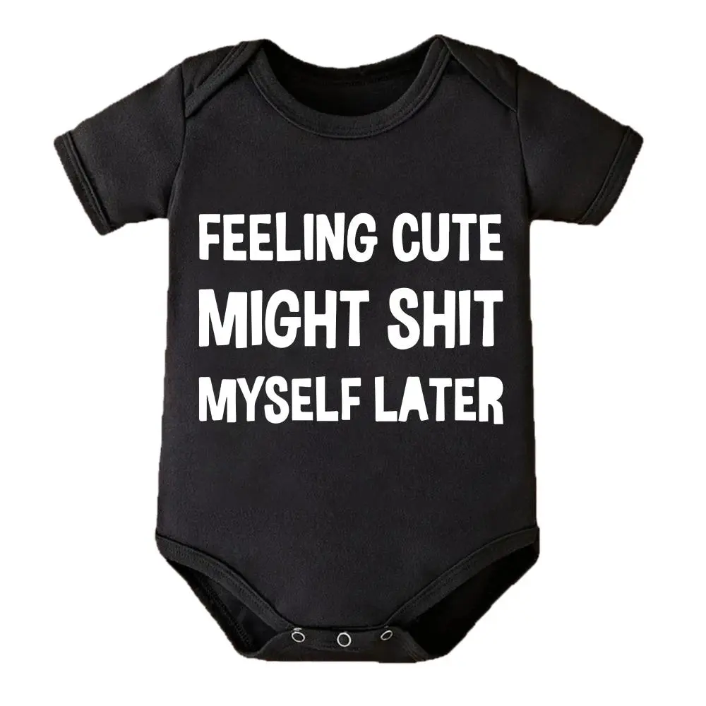 Cute Baby Bodysuit With Feeling Cute Might Shit Myself Later Print Soft Versatile Round Neck Button Detail Regular Fit All Seasons Knitted Fabric Onesie