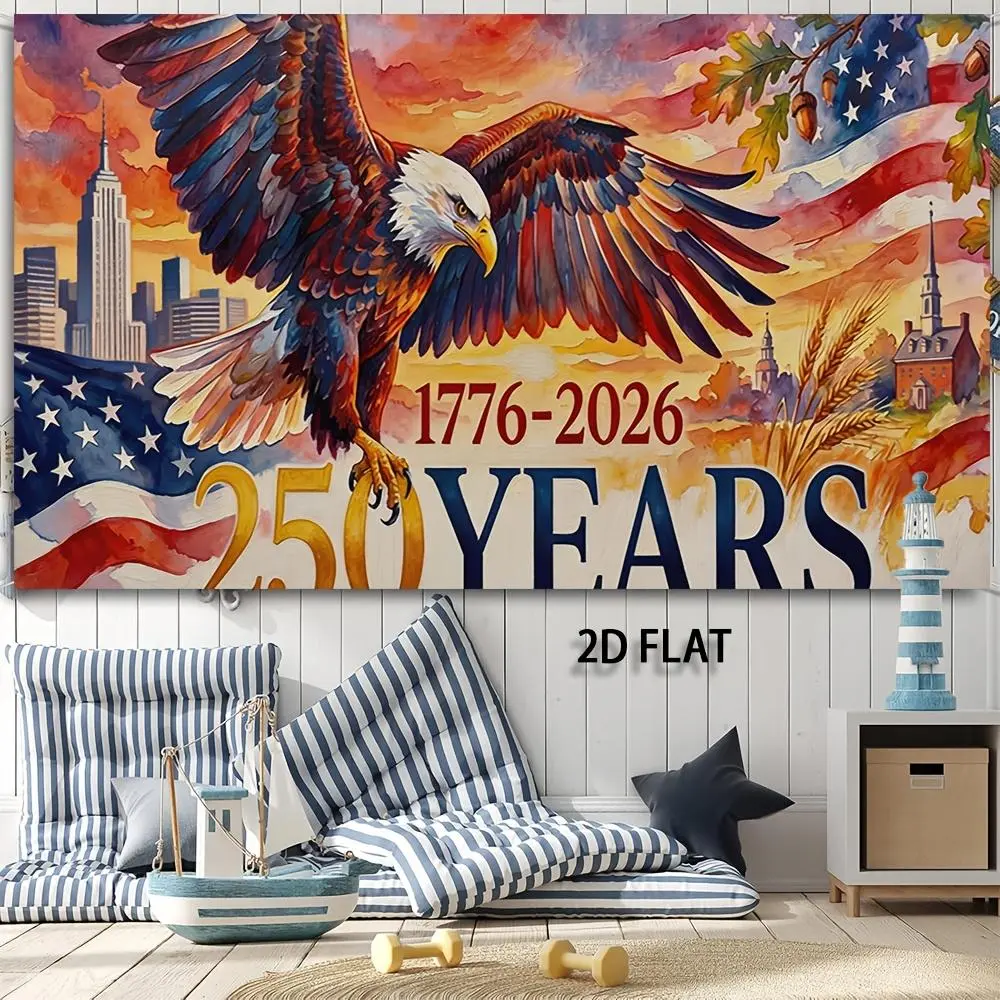 2D Flat, 1pc 250th Anniversary Banner Tapestry - Horizontal Patriotic Decoration Suitable for,, Office | Colorful National Celebration Background Fabric with Historical for 250 Years Events, Print for Decor, 2D Flat